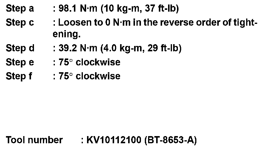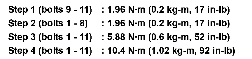 Follow the steps below to tighten the cylinder head bolts using Tool, in the numerical order as shown.