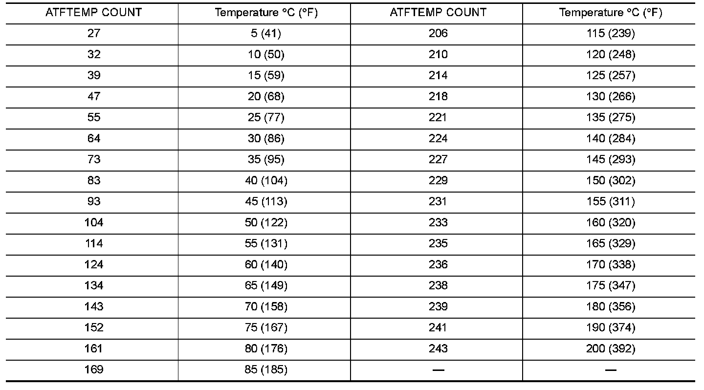 ATF temp Count Conversion Table