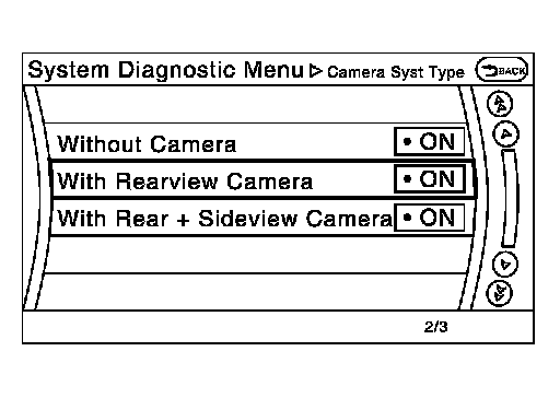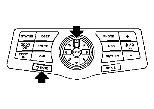 - Press the "BACK" switch and the "UP" switch of the 8-direction switches within 10 seconds after turning the ignition switch from