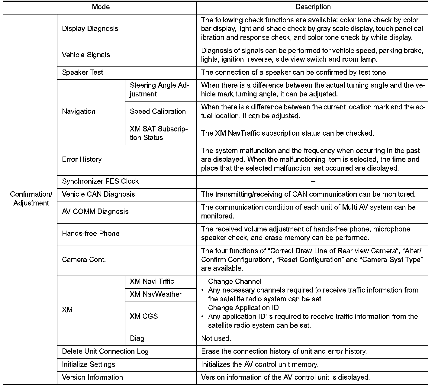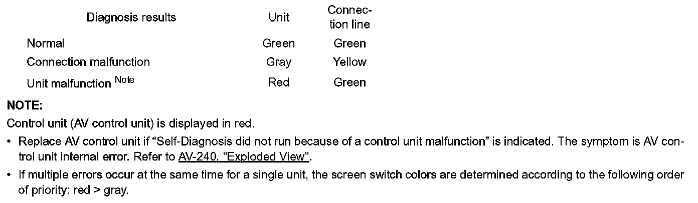 - The self-diagnosis mode allows the technician to diagnose the connection in the communication line between AV control unit and each unit and the internal operation of the AV control unit.
