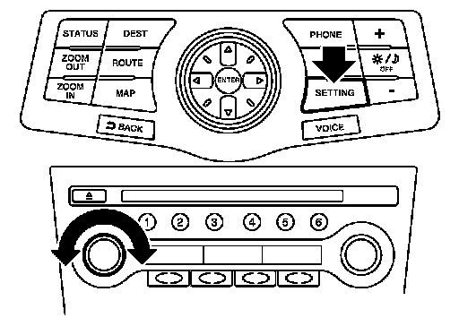 3.While pressing the "SETTING" button, turn the volume control dial clockwise or counterclockwise for 40 clicks or more. (When the self-diagnosis mode is started, a short beep will be heard.)
