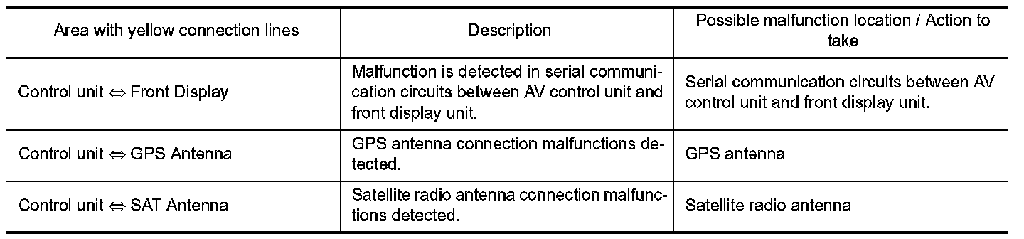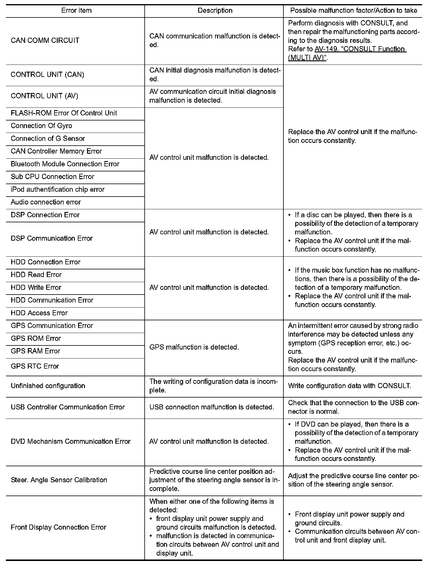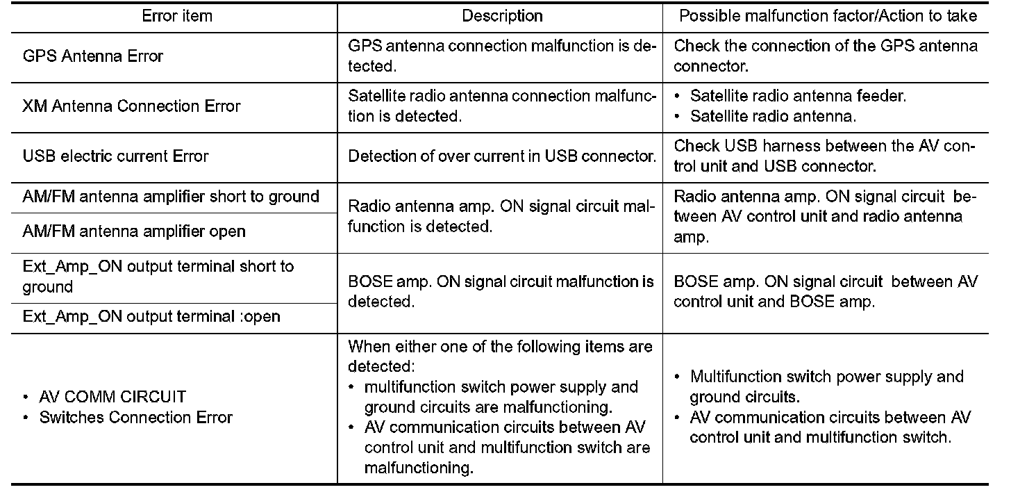 - Because the start condition of diagnosis function is a switch operation, the on board diagnosis function cannot be started up if any malfunction is detected in the communication circuit between AV control unit and multifunction switch.
