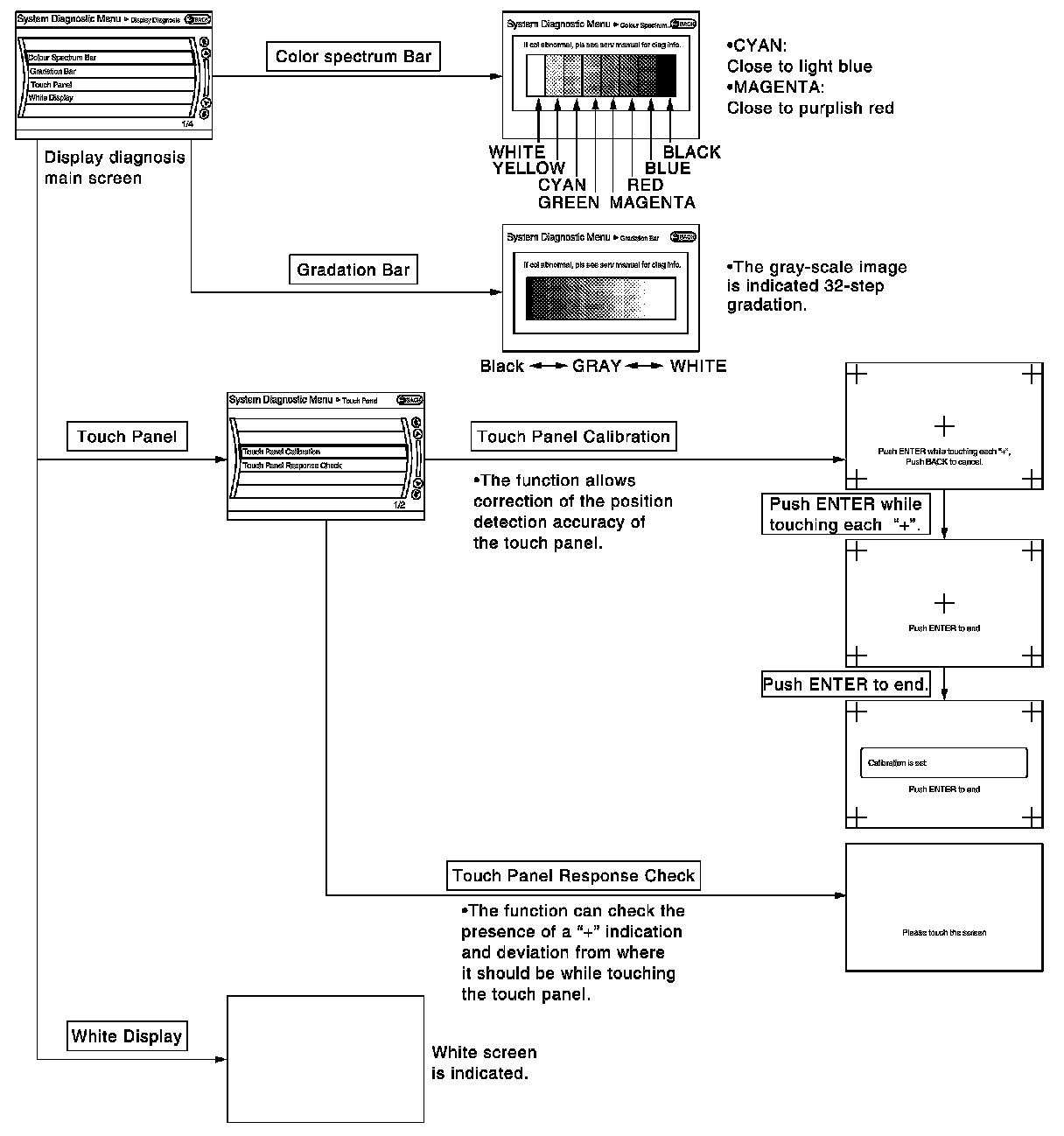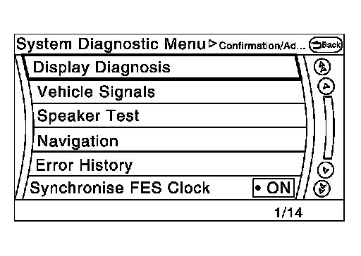 screen to display the relevant trouble diagnosis screen. Press the "Back" switch to return to the initial Confirmation/Adjustment