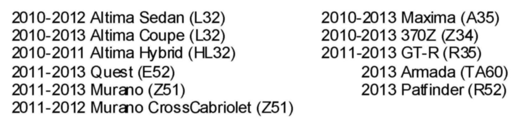 Nissan would also recommend that this procedure is used for non-warranty repairs to ensure that a proper diagnosis and repair are performed.