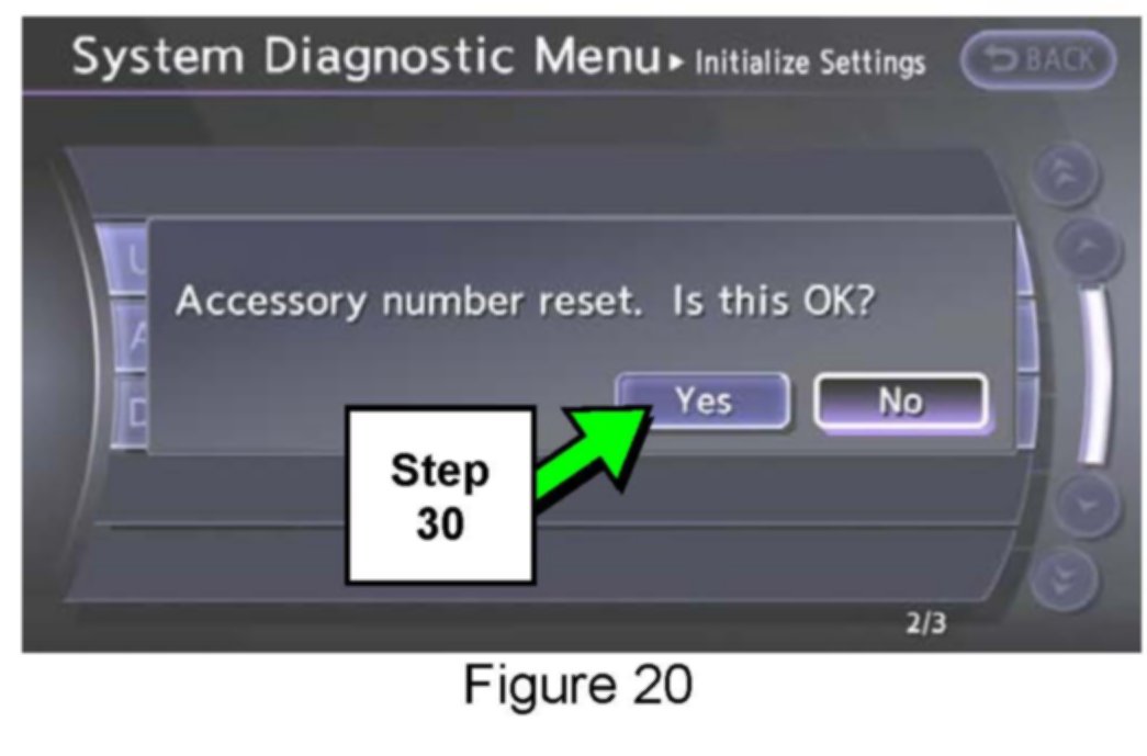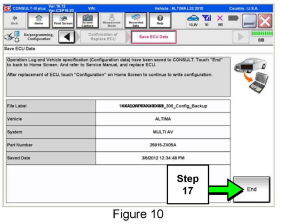 If the configuration data cannot be saved, replace the AV Control Unit as instructed in the applicable Electronic Service Manual (ESM) and then proceed to PART 3: Perform Multi AV Initialization shown below in this bulletin.