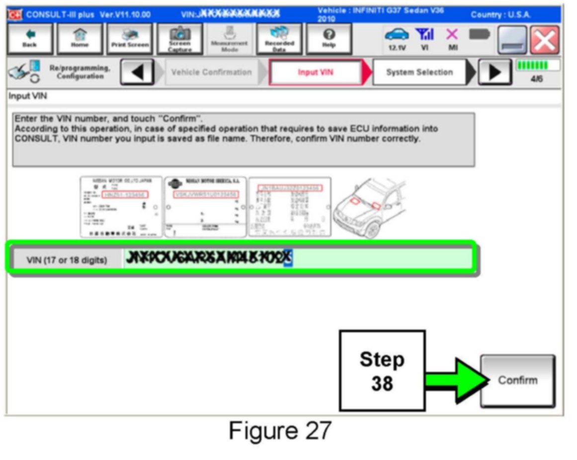 If the VIN displayed is incorrect, input the correct VIN. When finished, select Confirm.