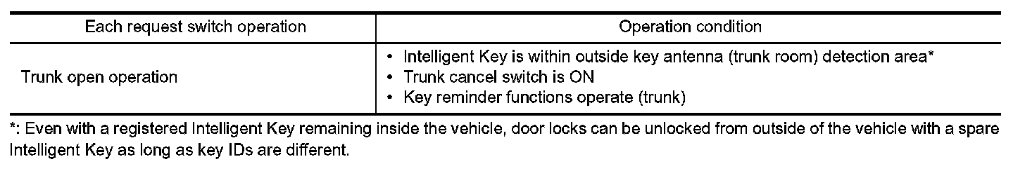 If the following conditions are not satisfied, trunk open operation is not performed even if the request switch is operated.