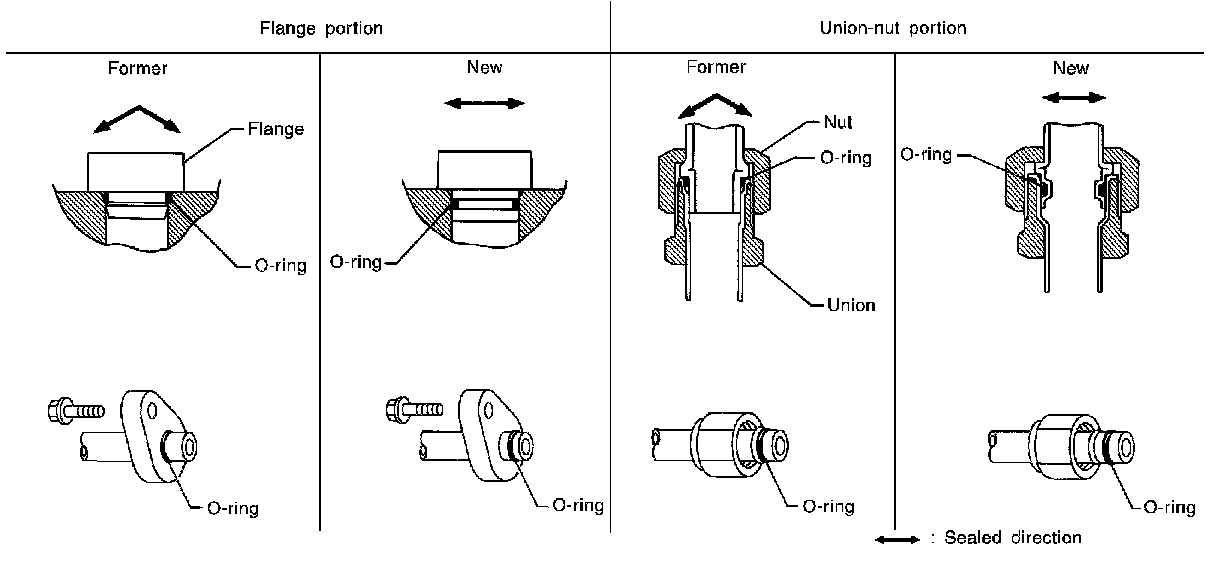 - The O-ring has been relocated. It has also been provided with a groove for proper installation. This eliminates the chance of the O-ring being caught in, or damaged by, the mating part. The sealing direction of the