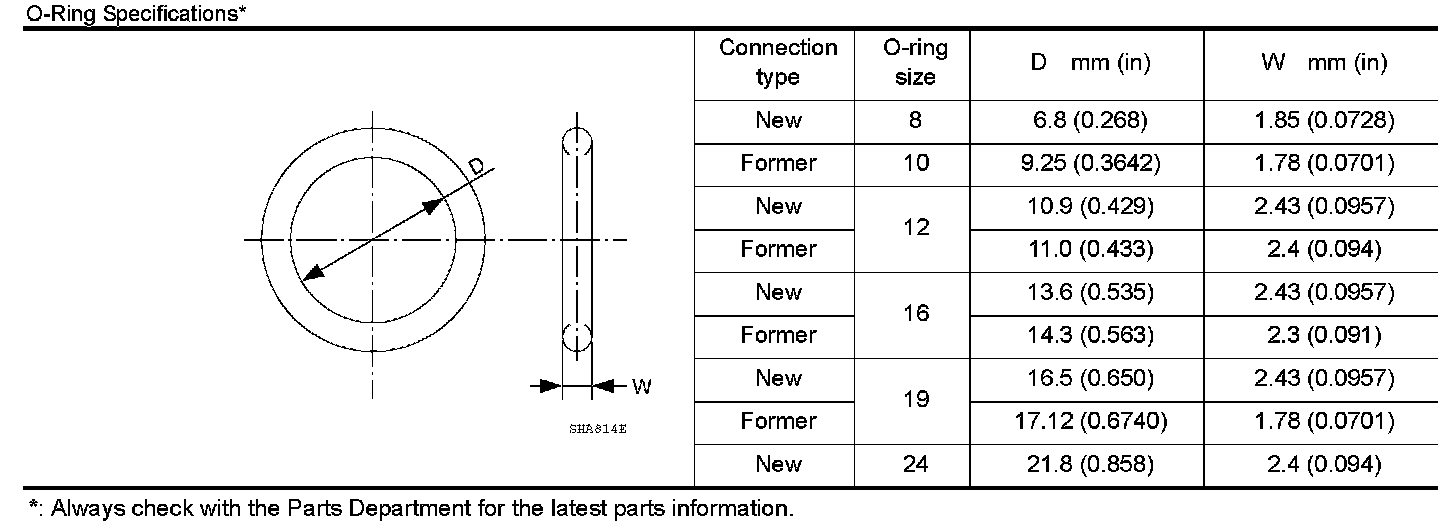 The new and former refrigerant connections use different O-ring configurations. Do not confuse Orings since they are not interchangeable. If a wrong O-ring is installed, refrigerant will leak at, or around, the connection.