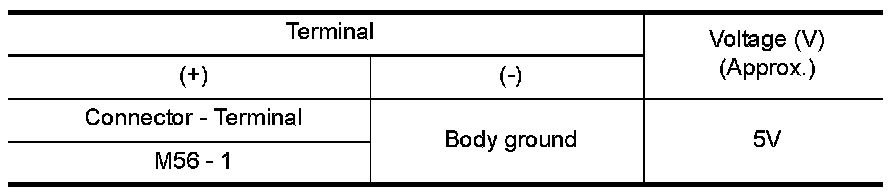 3.Check voltage between sunload sensor harness connector M56 terminal 1 and ground.