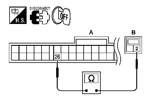 3.Check continuity between front air control connector M152 (A) terminal 26 and sunload sensor harness connector M56 (B) terminal 2.