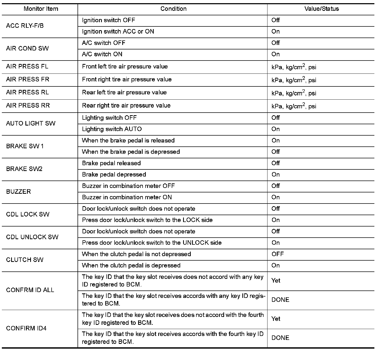 - Display tire pressure reported by the TPMS transmitter