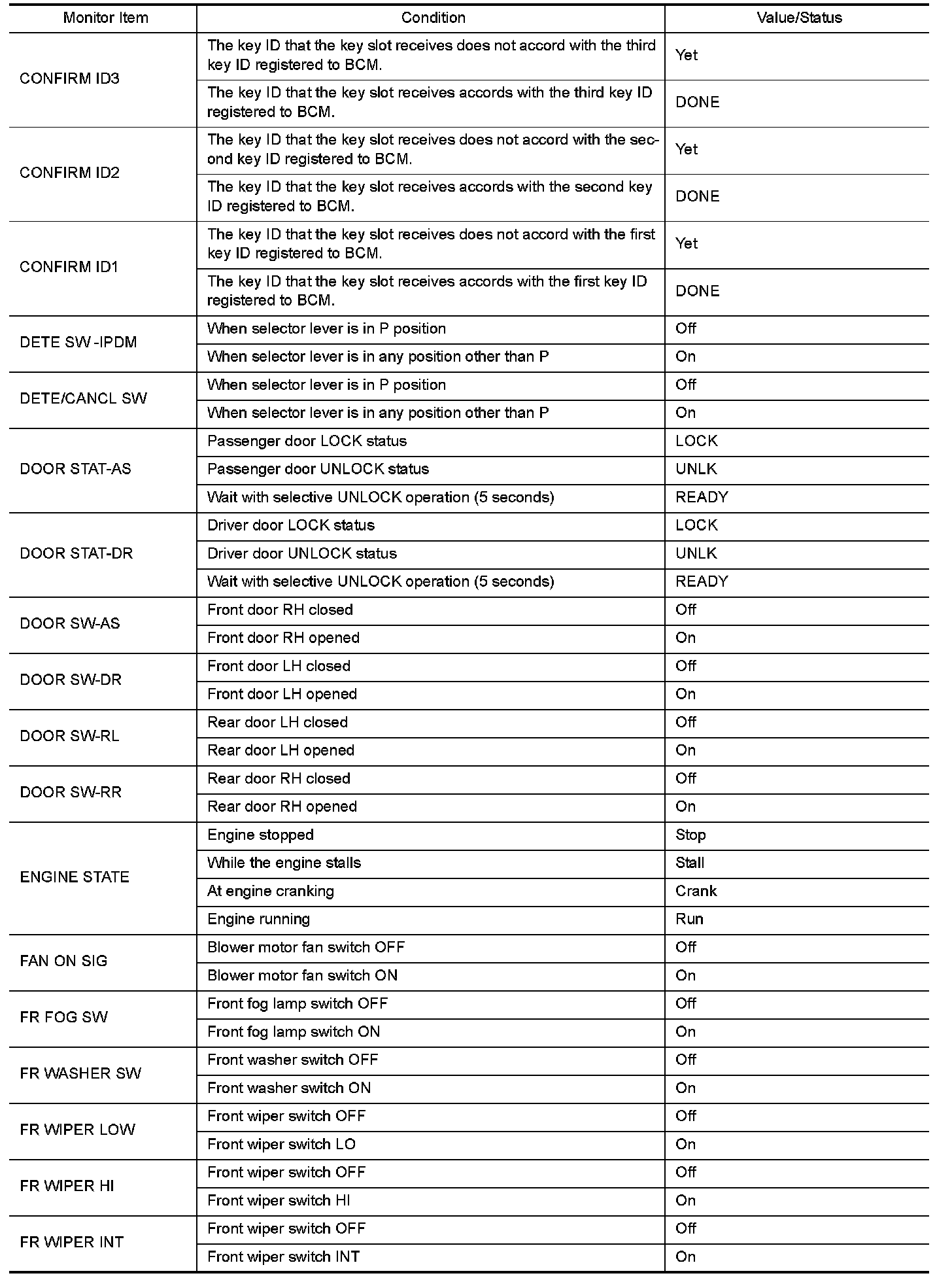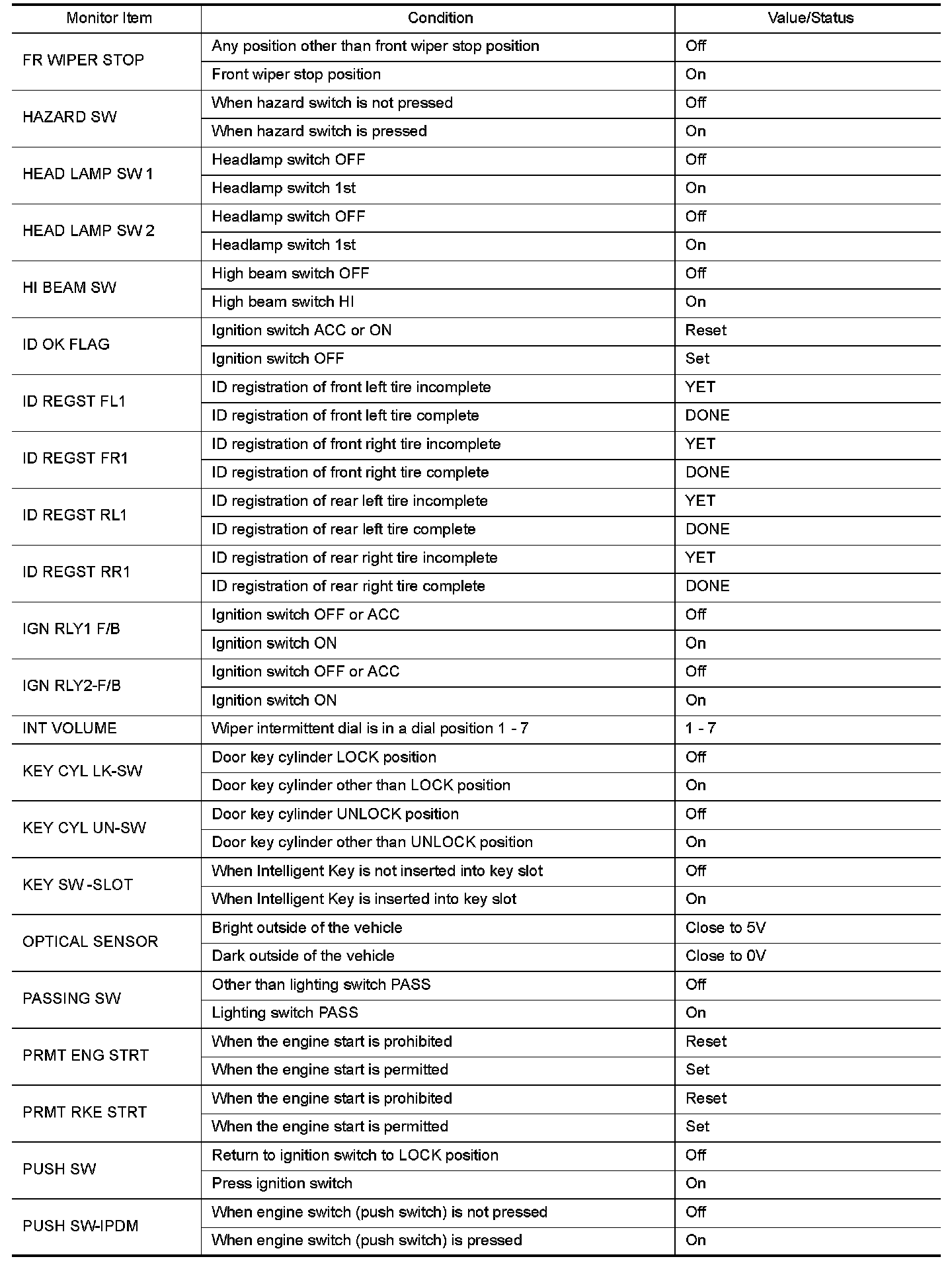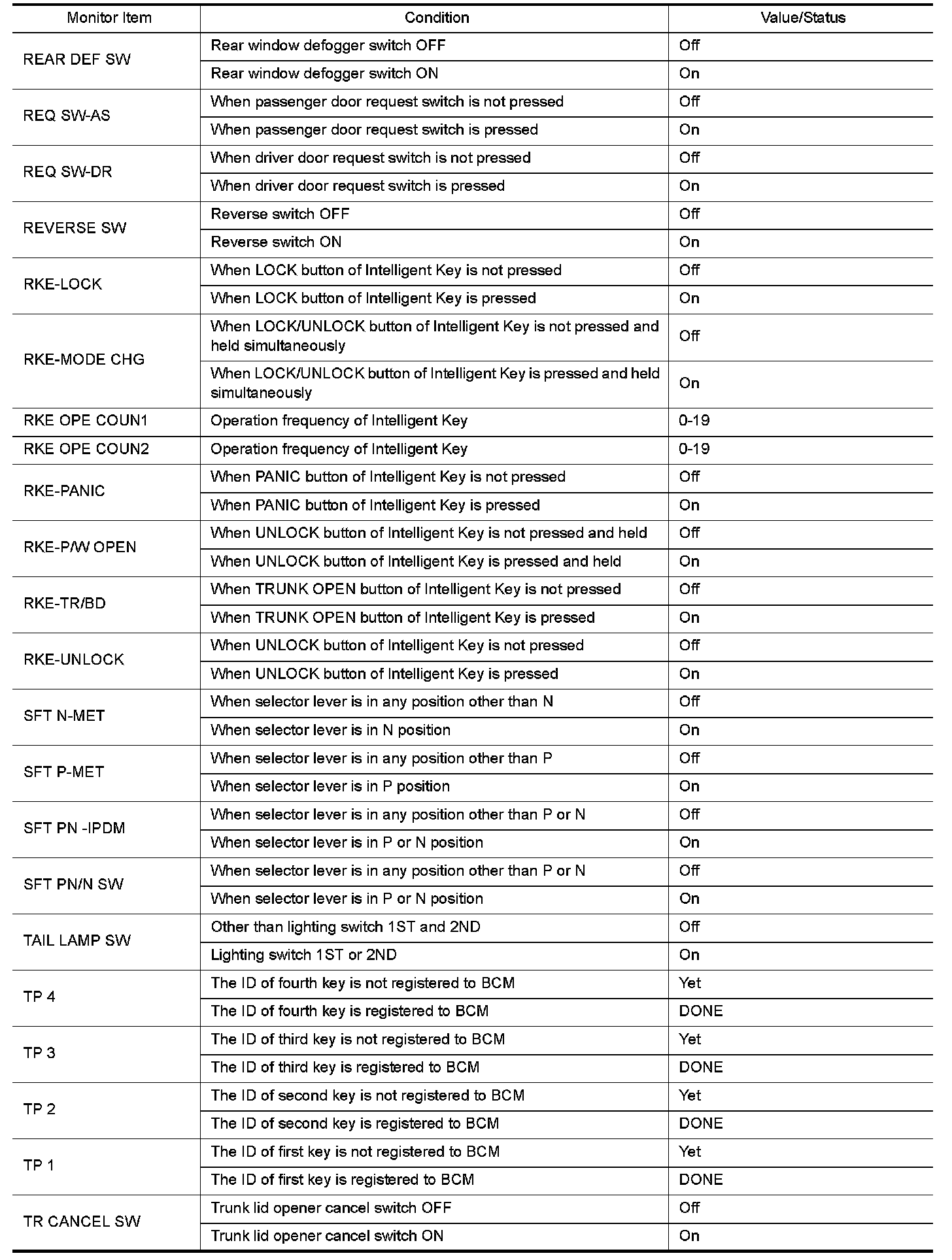 - Check Intelligent Key relative signal strength