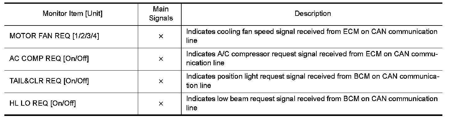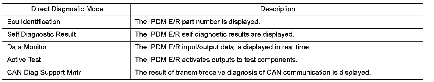 CONSULT performs the following functions via CAN communication with IPDM E/R.