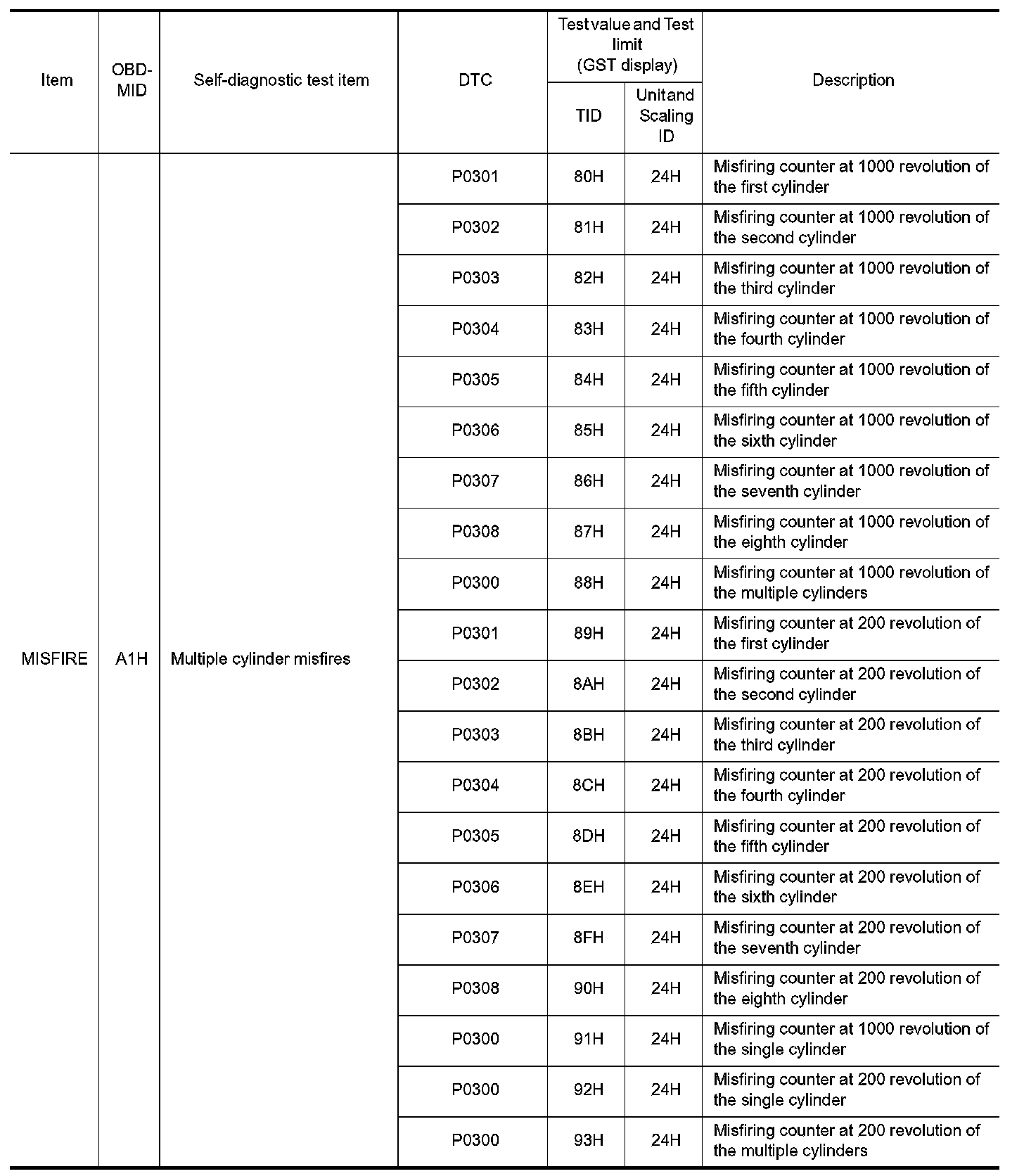 These data (test value and test limit) are specified by On Board Monitor ID (OBDMID), Test ID (TID), Unit and