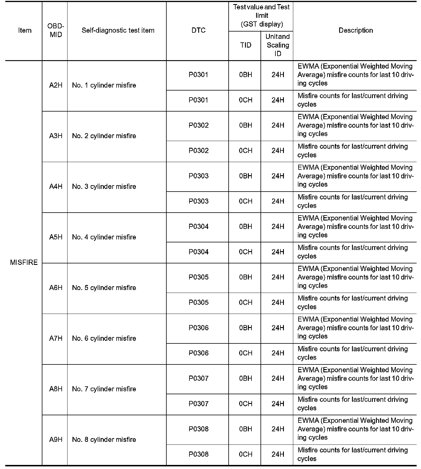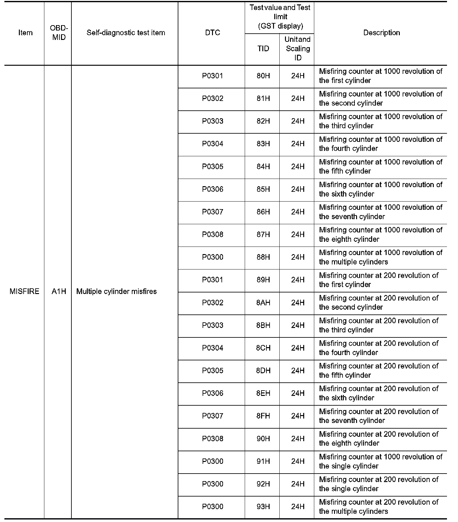 These data (test value and test limit) are specified by On Board Monitor ID (OBDMID), Test ID (TID), Unit and