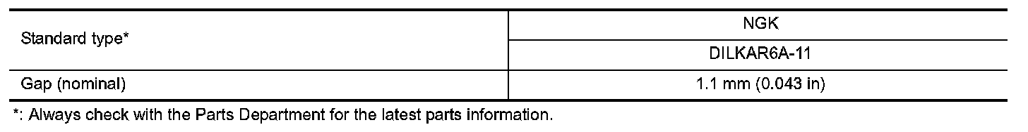 - Checking and adjusting plug gap is not required between change intervals. If the gap is out of specification, replace the spark plug.
