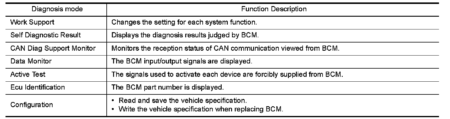 CONSULT performs the following functions via CAN communication with BCM.