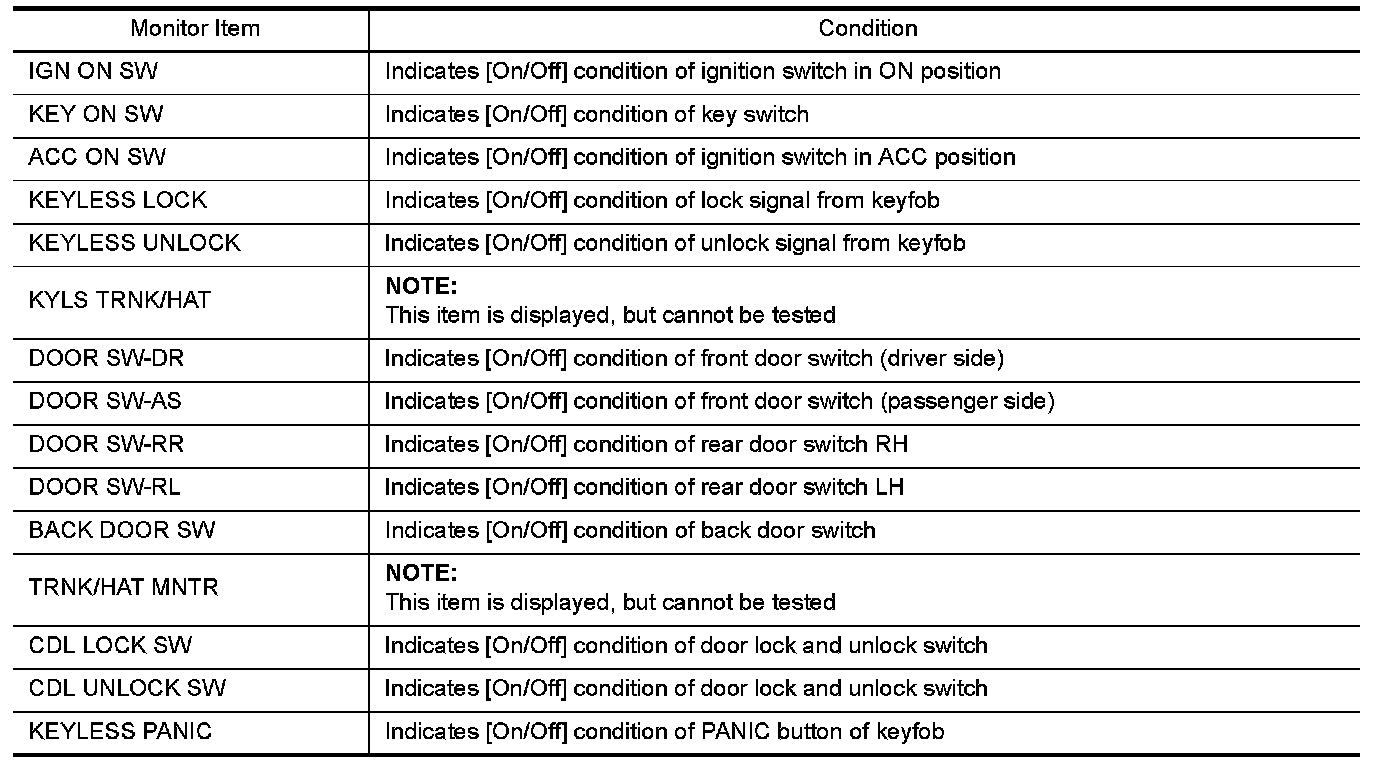 CONSULT performs the following functions via CAN communication with BCM.