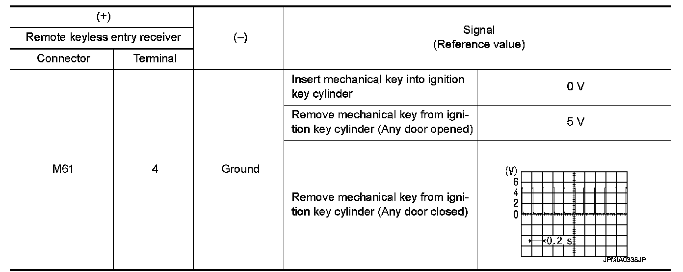 2.Check signal between remote keyless entry receiver harness connector and ground using oscilloscope.