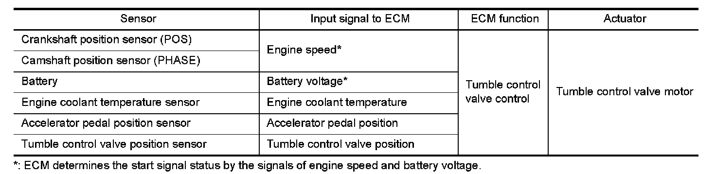 Also, except when idling and during low engine coolant temperature, this system opens the tumble control valve.
