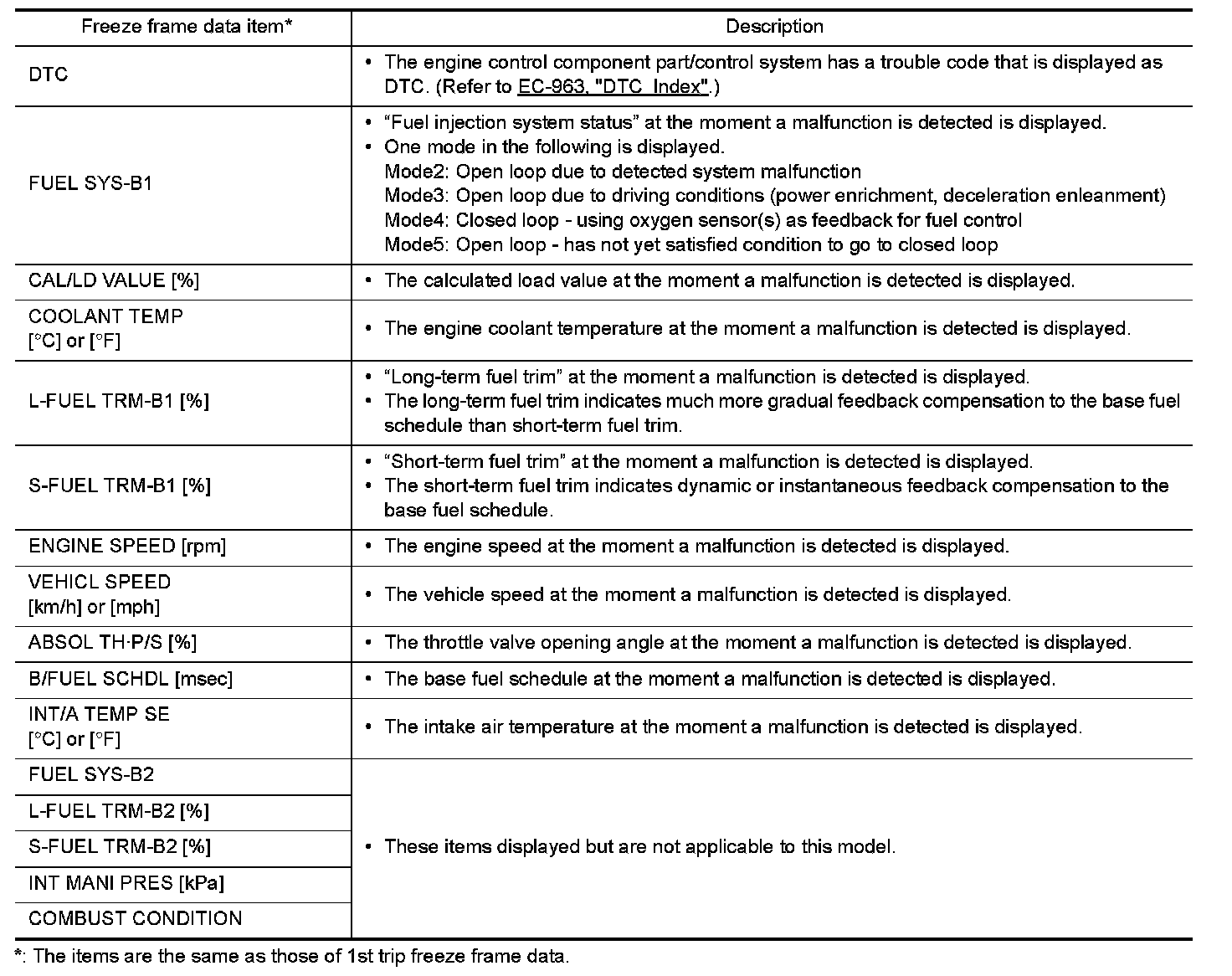 Freeze Frame Data and 1st Trip Freeze Frame Data