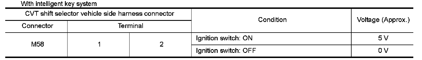 4.Check voltage between CVT shift selector vehicle side harness connector terminals.