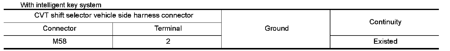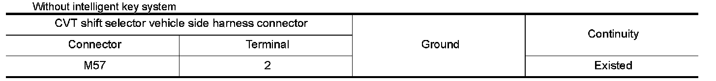 2.Check continuity between CVT shift selector vehicle side harness connector terminal and ground.