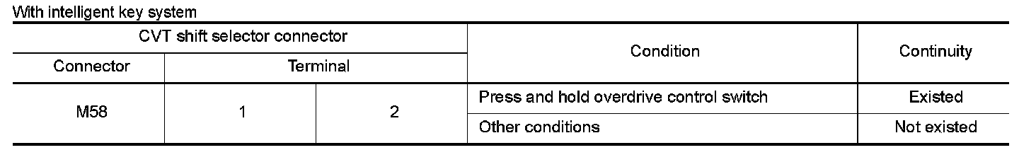 4. CHECK HARNESS BETWEEN CVT SHIFT SELECTOR (OVERDRIVE CONTROL SWITCH) AND COMBINATION METER (PART 1)