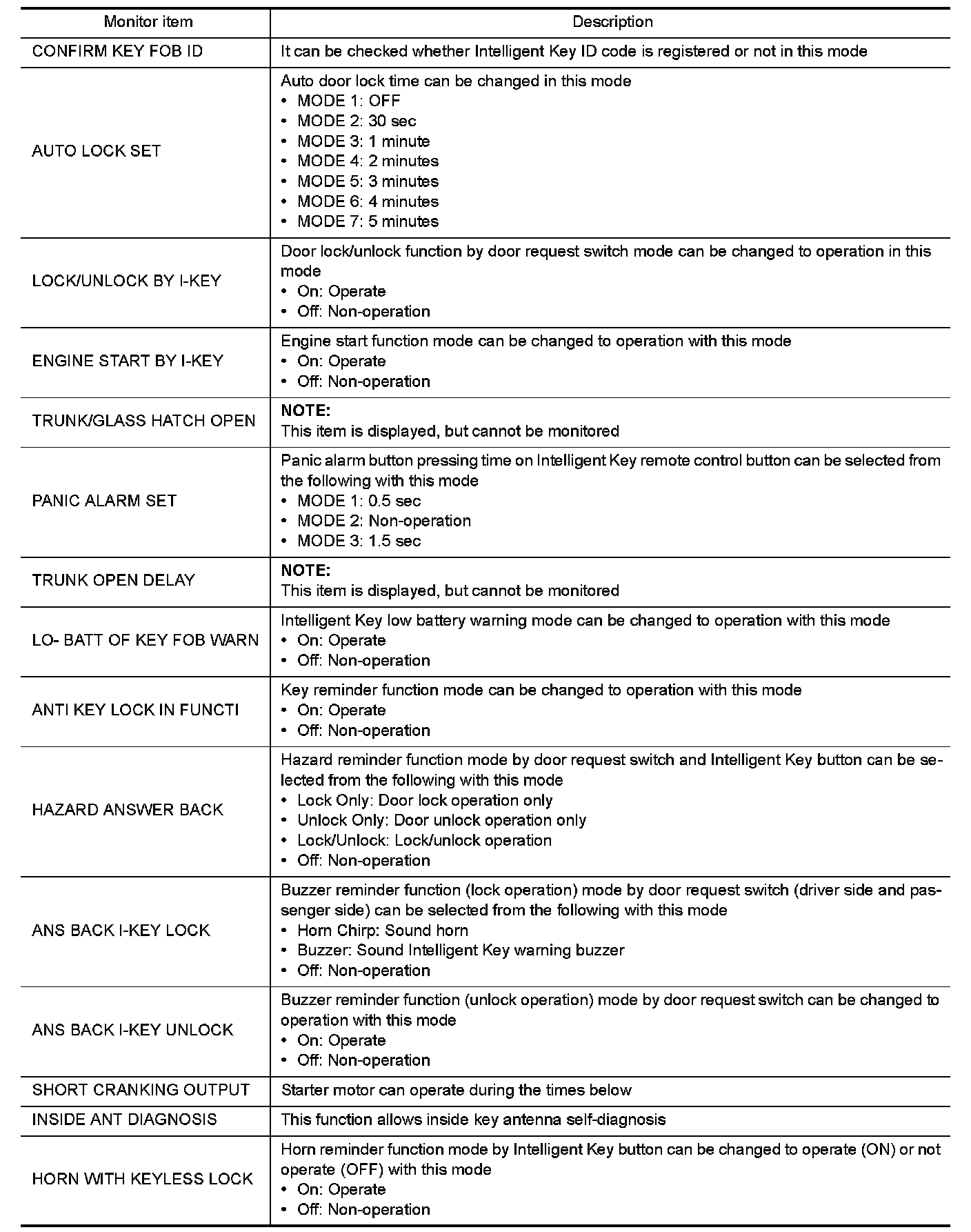 INTELLIGENT KEY : CONSULT Function (
