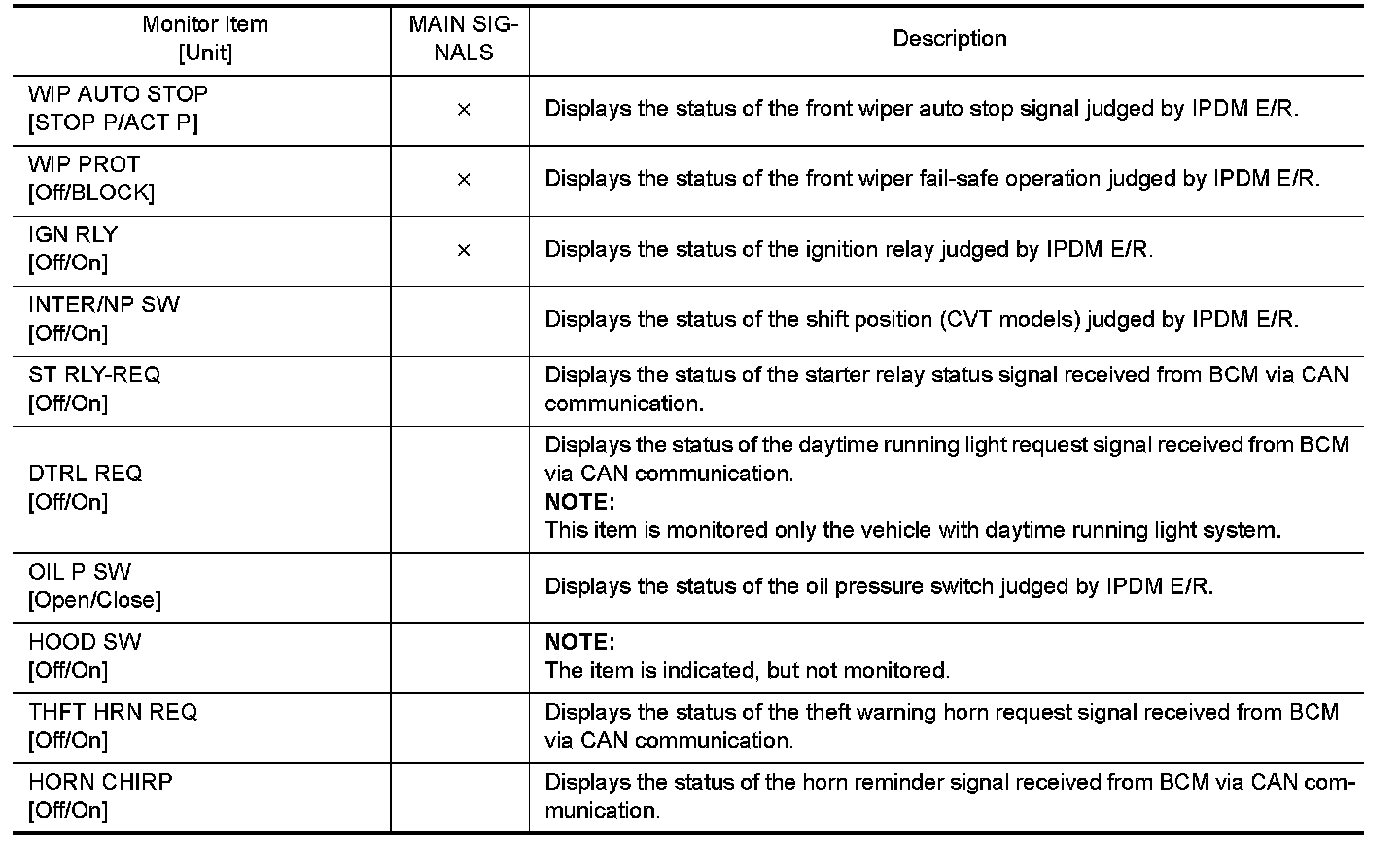 CONSULT performs the following functions via CAN communication with IPDM E/R.