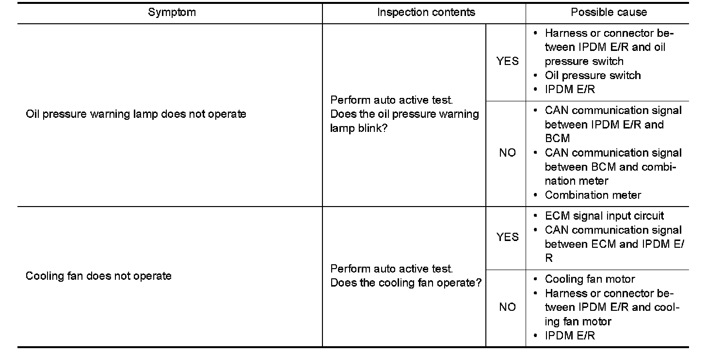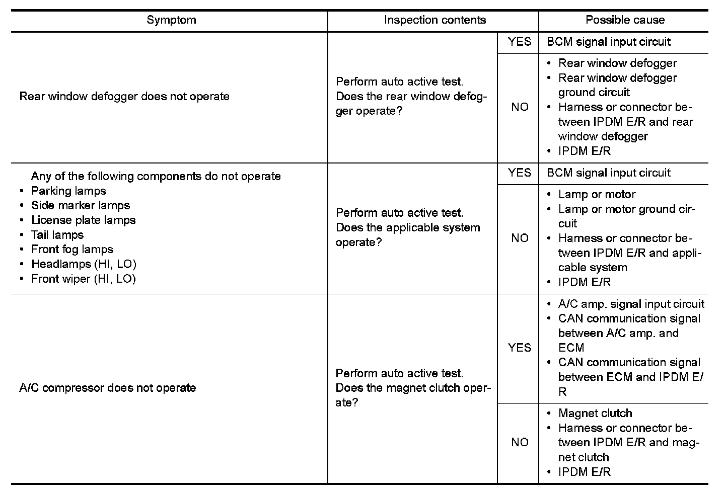 - The auto active test facilitates troubleshooting if any systems controlled by IPDM E/R cannot be operated.