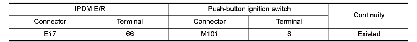 2.Check continuity between IPDM E/R harness connector and push-button ignition switch harness connector.