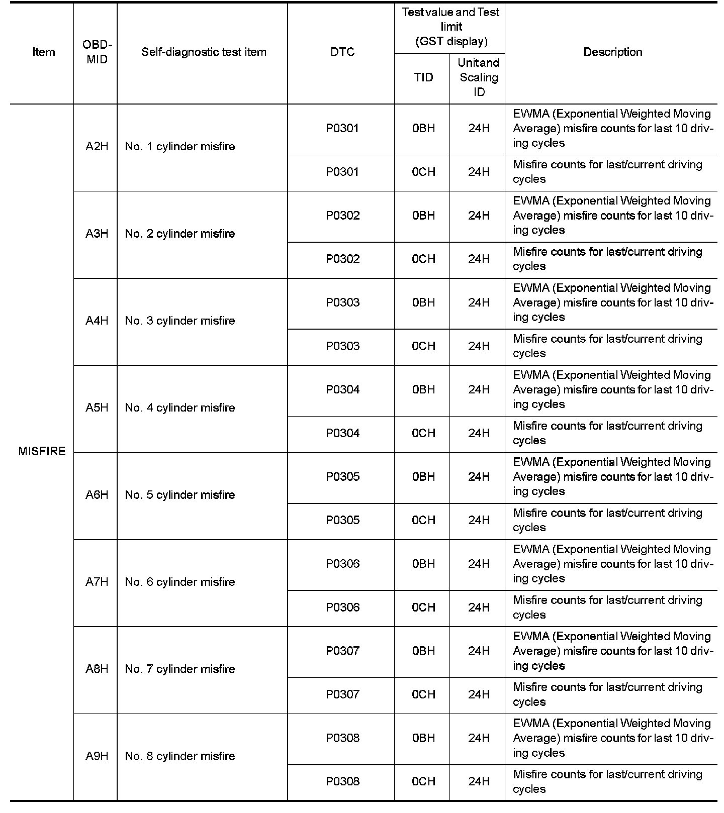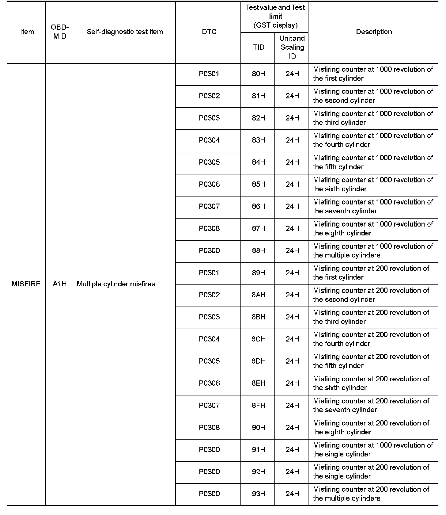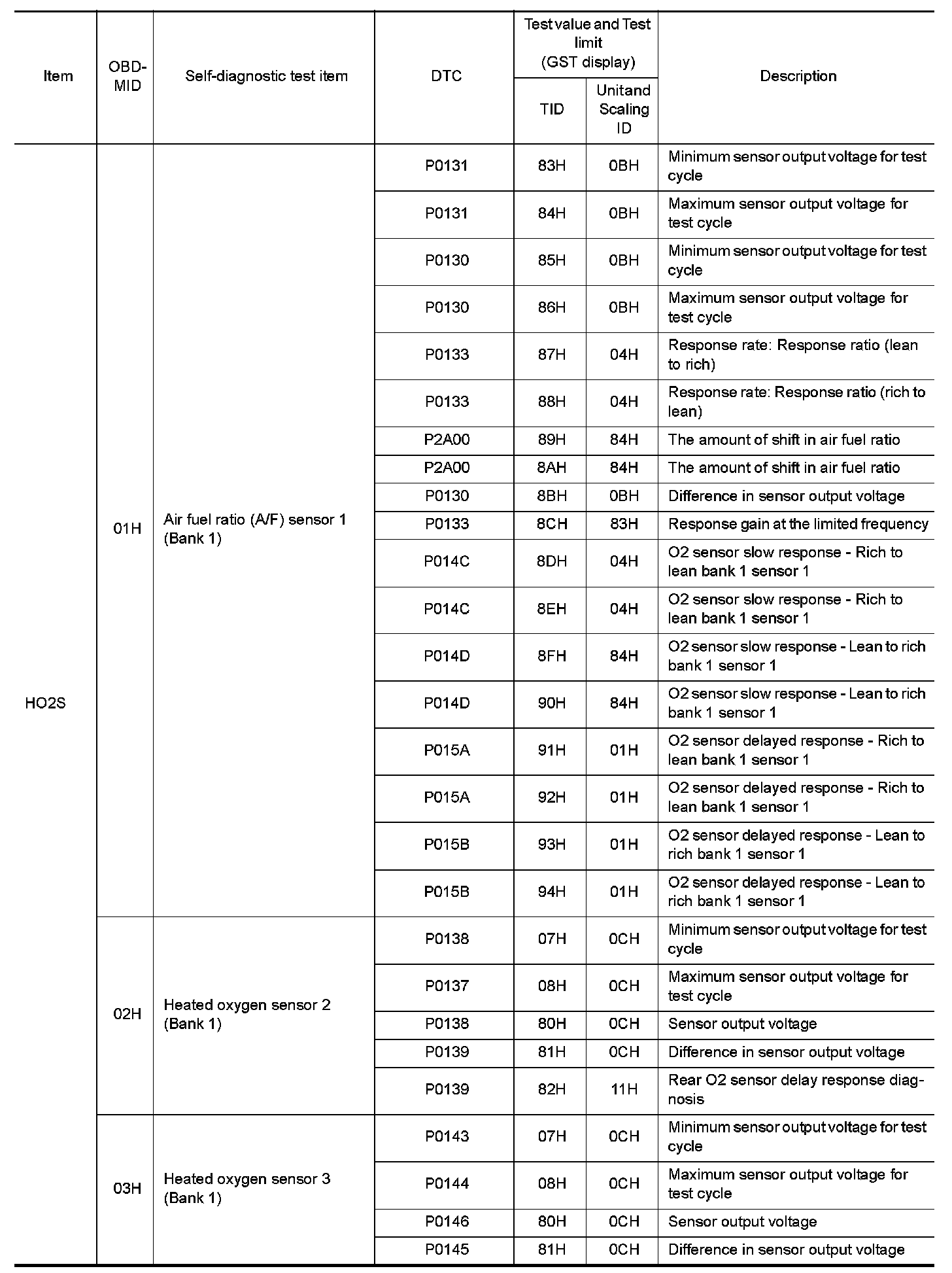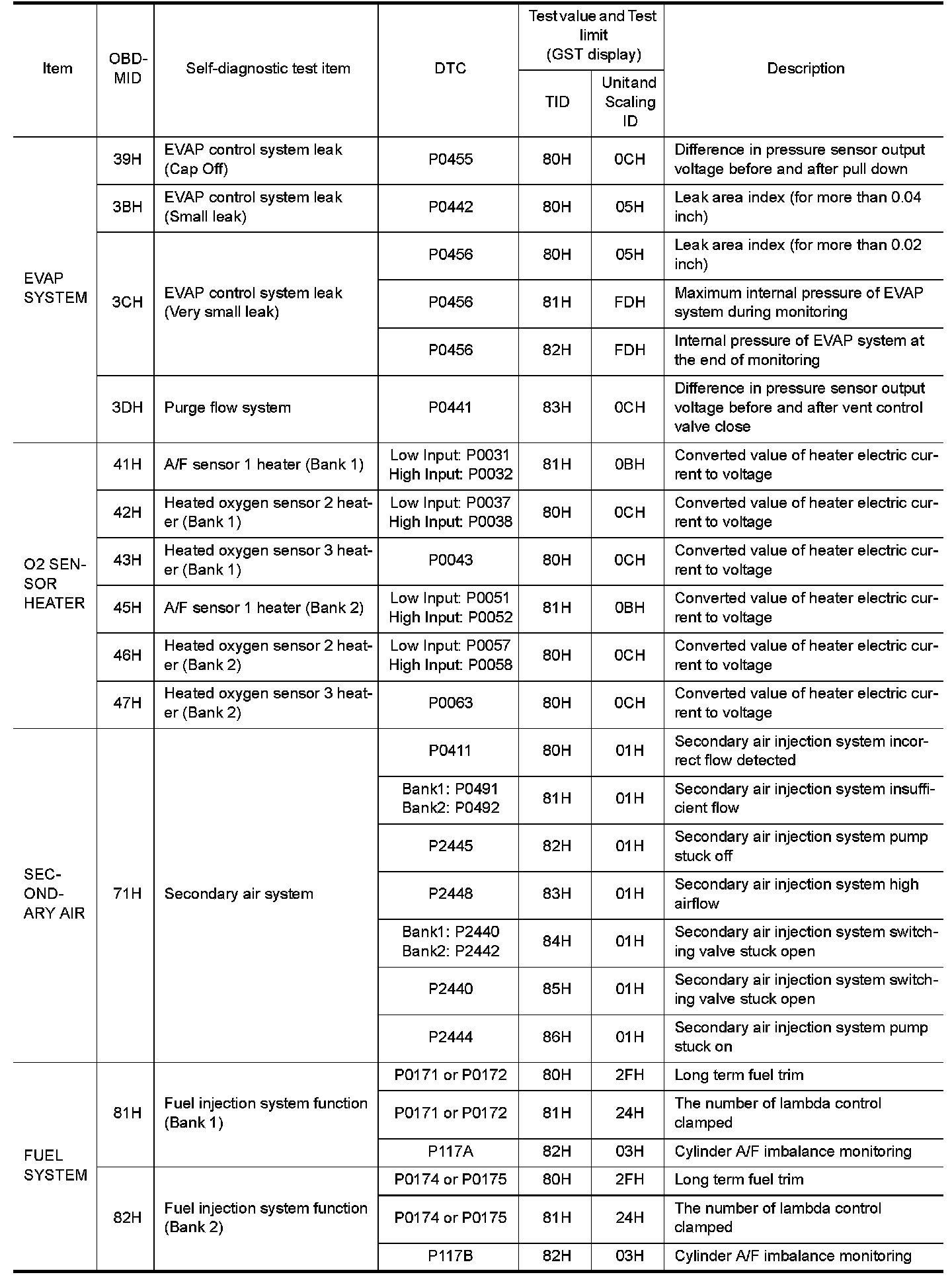 These data (test value and test limit) are specified by On Board Monitor ID (OBDMID), Test ID (TID), Unit and