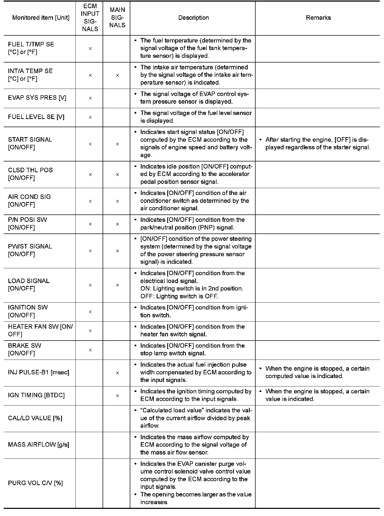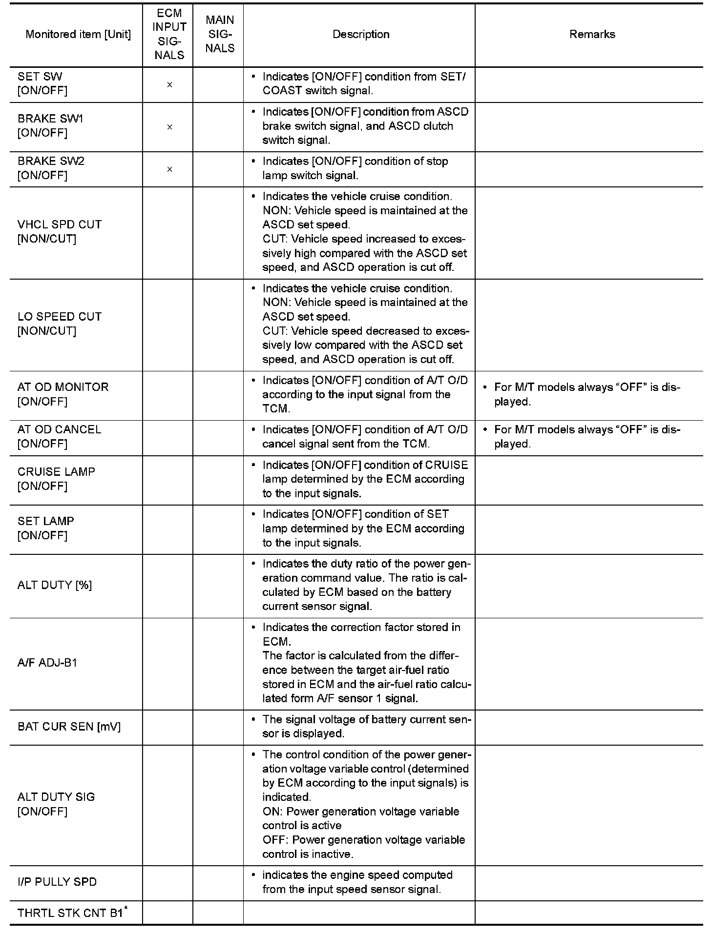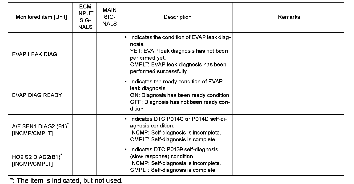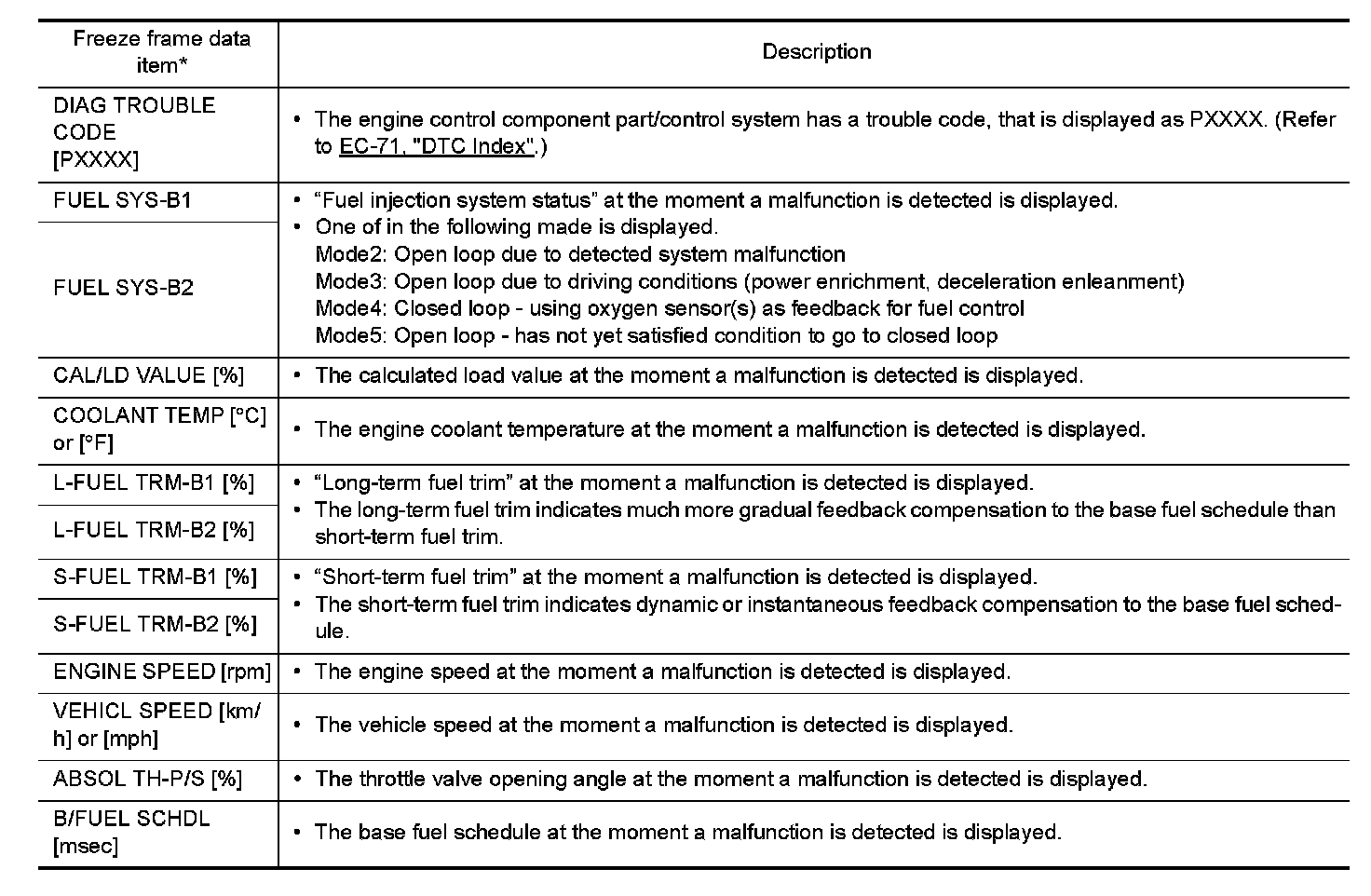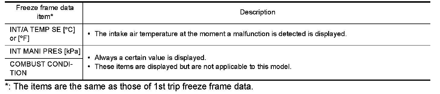 *: The items are the same as those of 1st trip freeze frame data.
