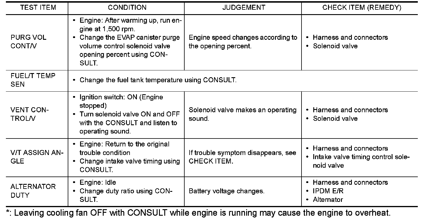*: Leaving cooling fan OFF with CONSULT while engine is running may cause the engine to overheat.