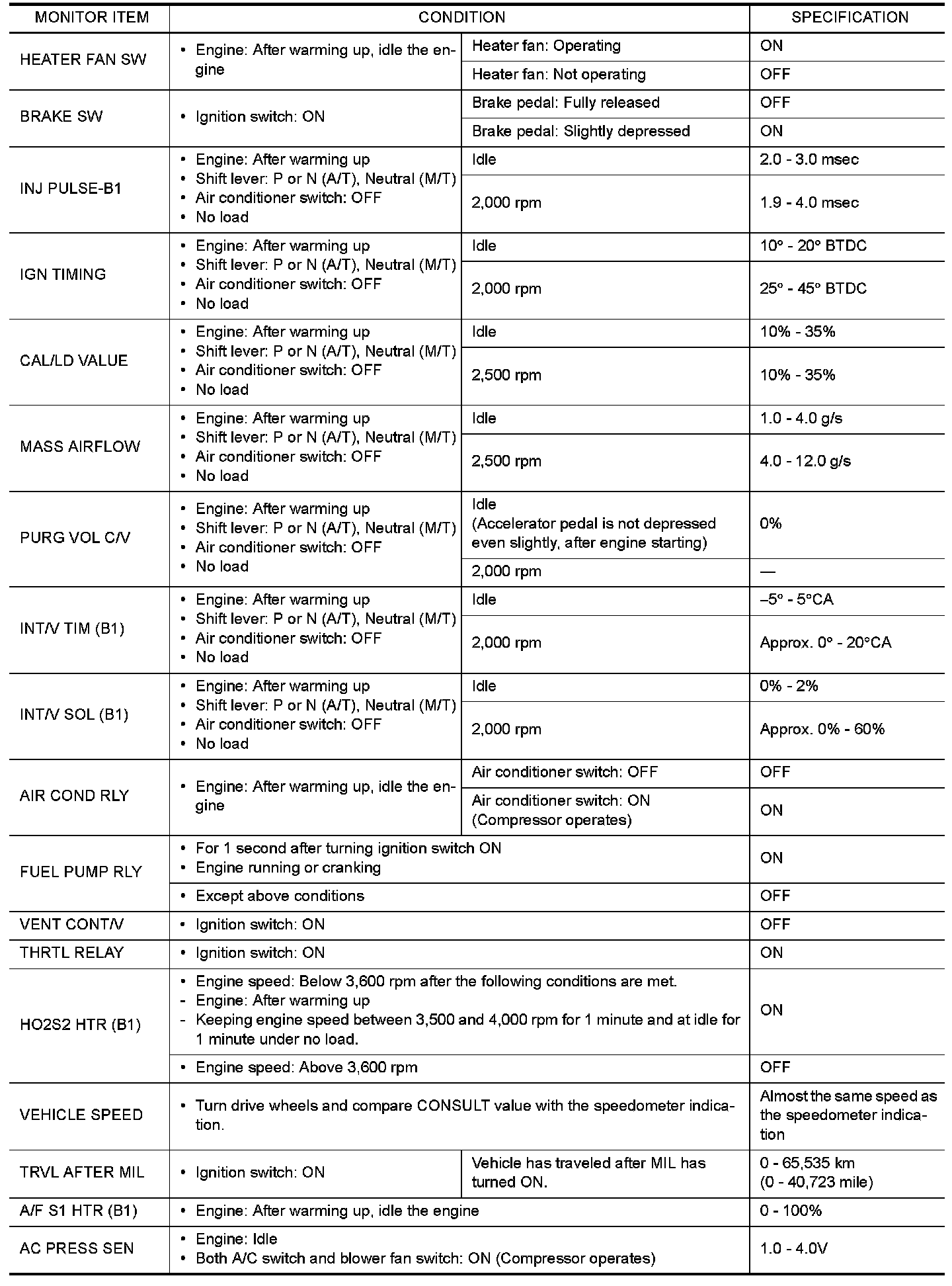 Specification data are output/input values which are detected or supplied by the ECM at the connector.
