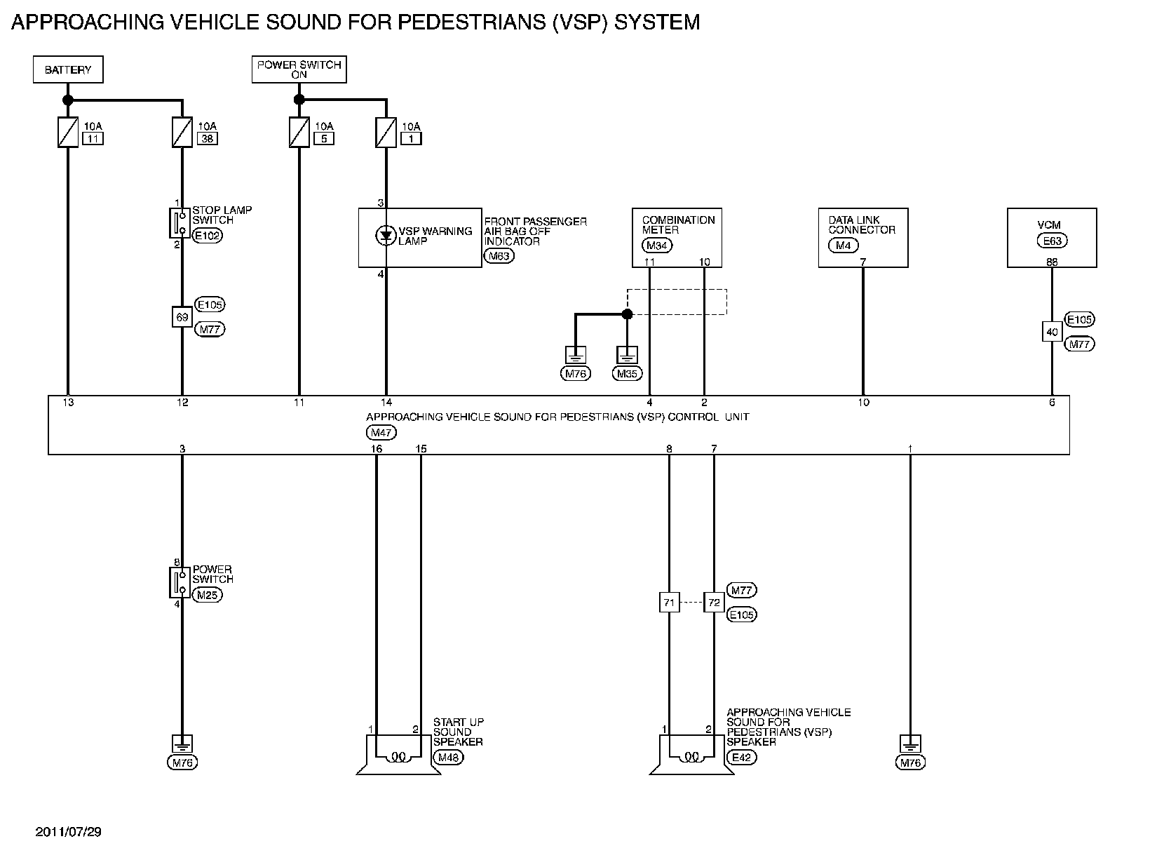 APPROACHING VEHICLE SOUND FOR PEDESTRIANS (VSP) SYSTEMWiring Diagram For connector terminal arrangements, harness layouts, and alphabets in a (option abbreviation; if not described in wiring diagram), refer to "Connector Information"