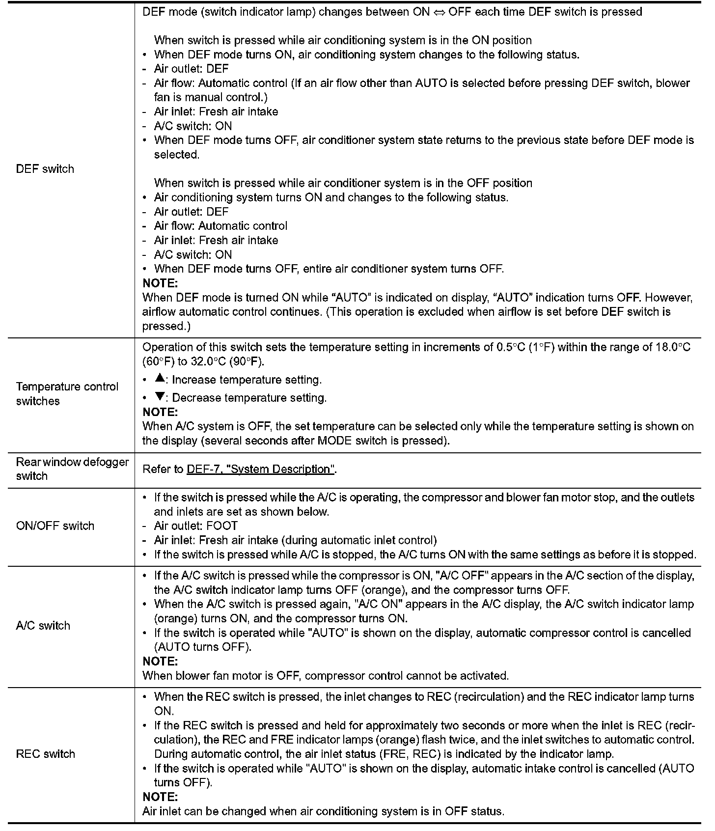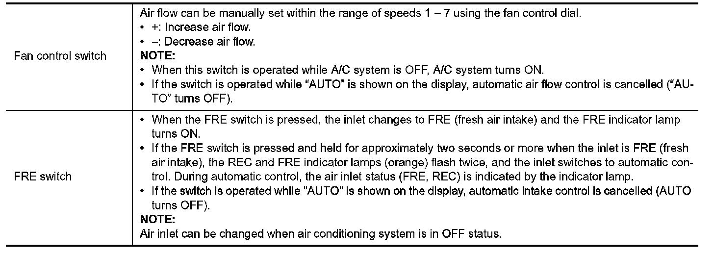 OPERATIONSwitch Name and Function AUTO A/C SYSTEM OPERATIONS AND DISPLAYS A/C Status Display (Inside Display)
