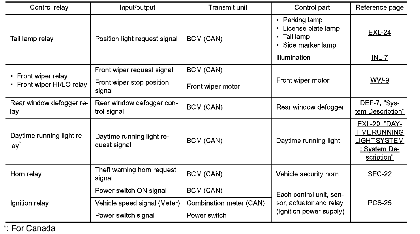 CAUTION: To prevent damage to the parts, IPDM E/R integrated relays cannot be removed. *: For Canada