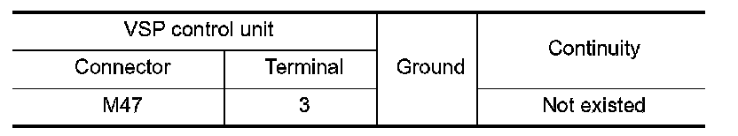 4.Check continuity between VSP control unit harness connector and ground.