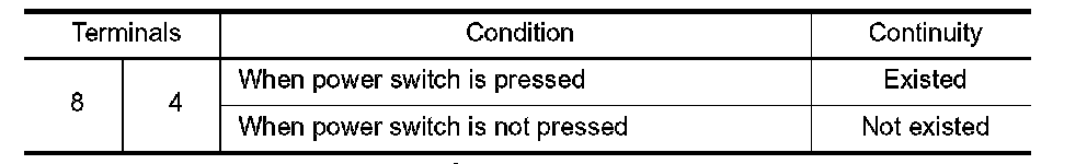 3.Check continuity between following terminals of the power switch.