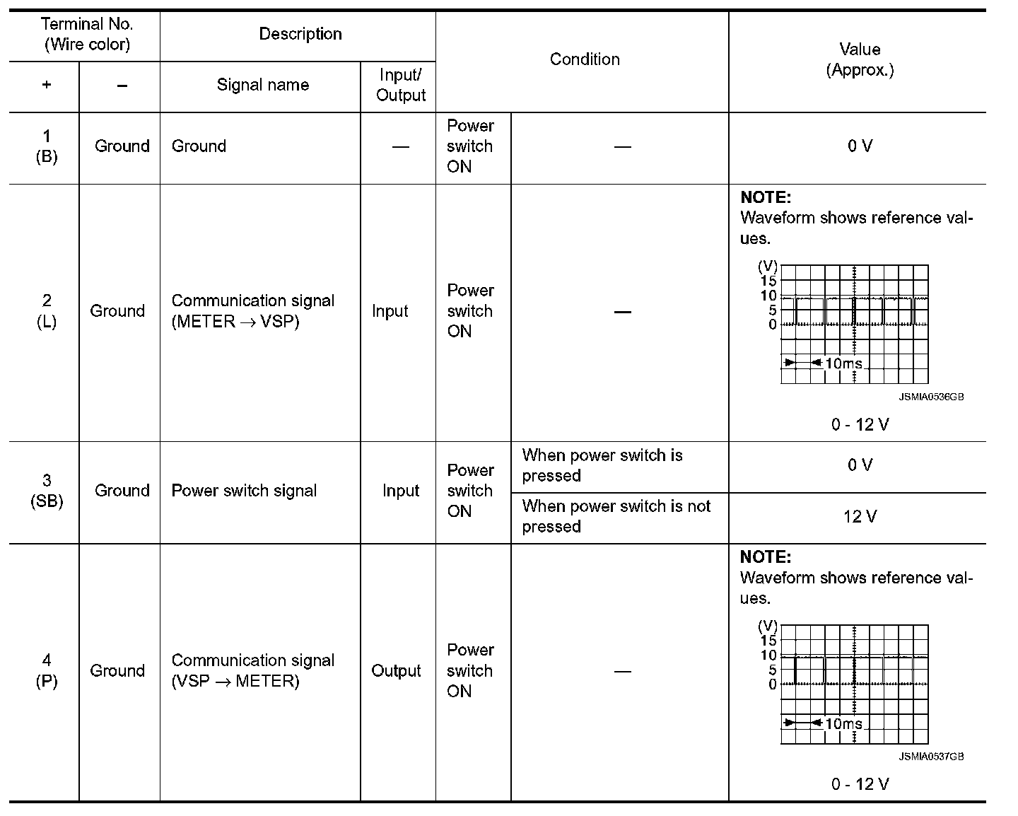 Pinout Values and Diagnostic Parameters