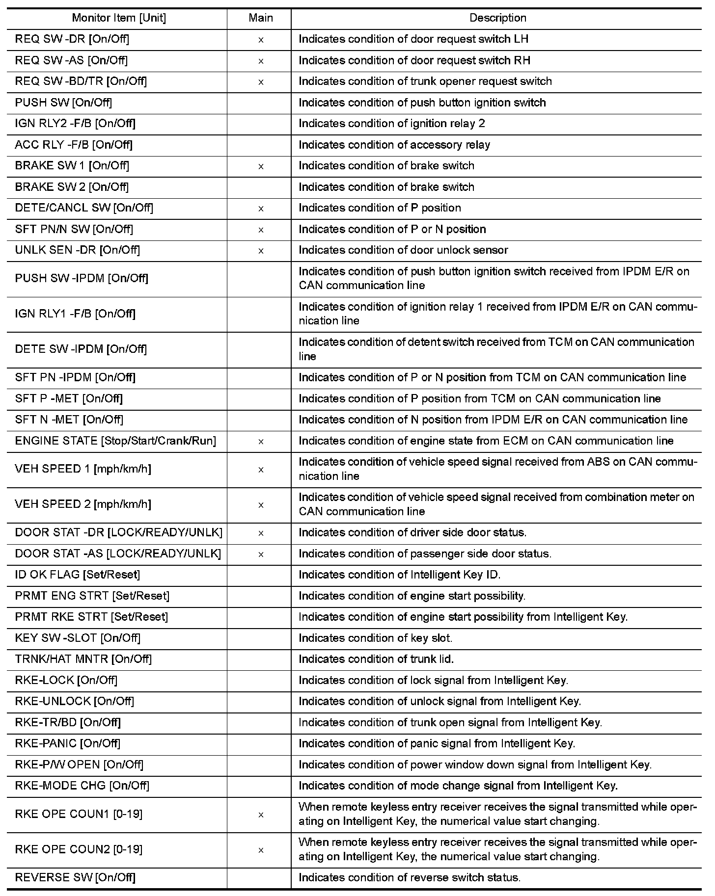 INTELLIGENT KEY : CONSULT Function (BCM - INTELLIGENT KEY)
