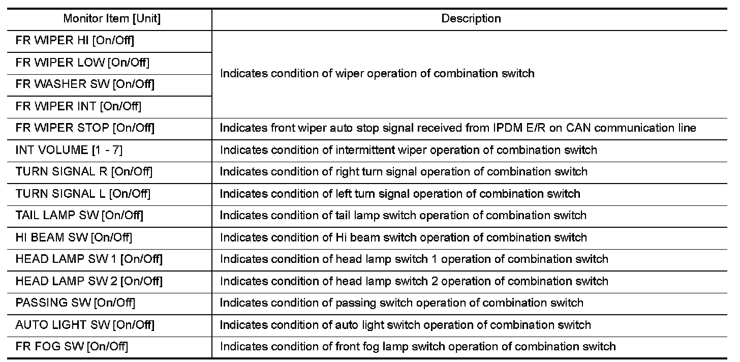 COMB SW : CONSULT Function (BCM-COMB SW)