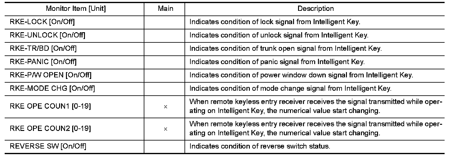 INTELLIGENT KEY : CONSULT Function (BCM - INTELLIGENT KEY)