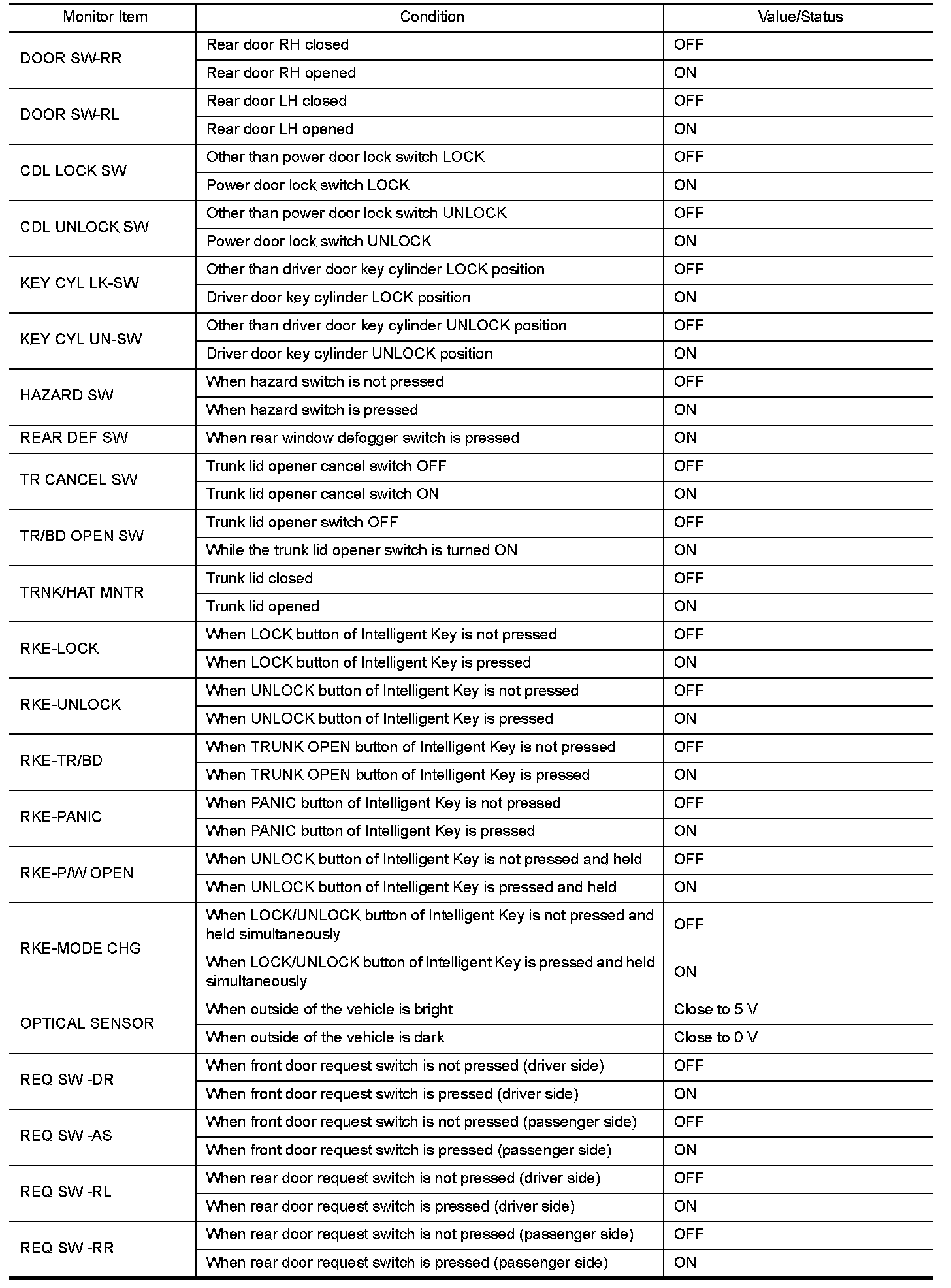 - Check Intelligent Key relative signal strength