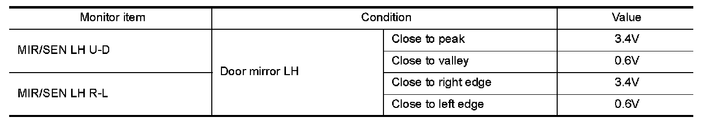 1.Select "MIR/SEN LH U-D", "MIR/SEN LH R-L" in "Date monitor" with CONSULT.