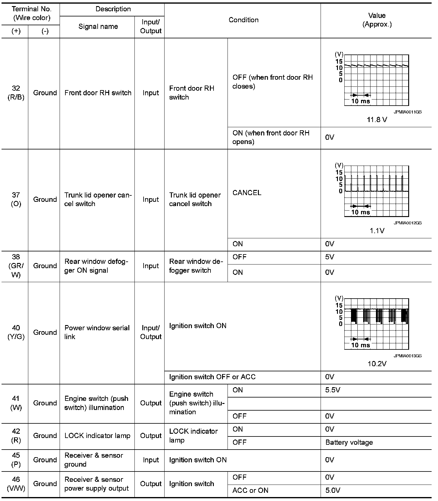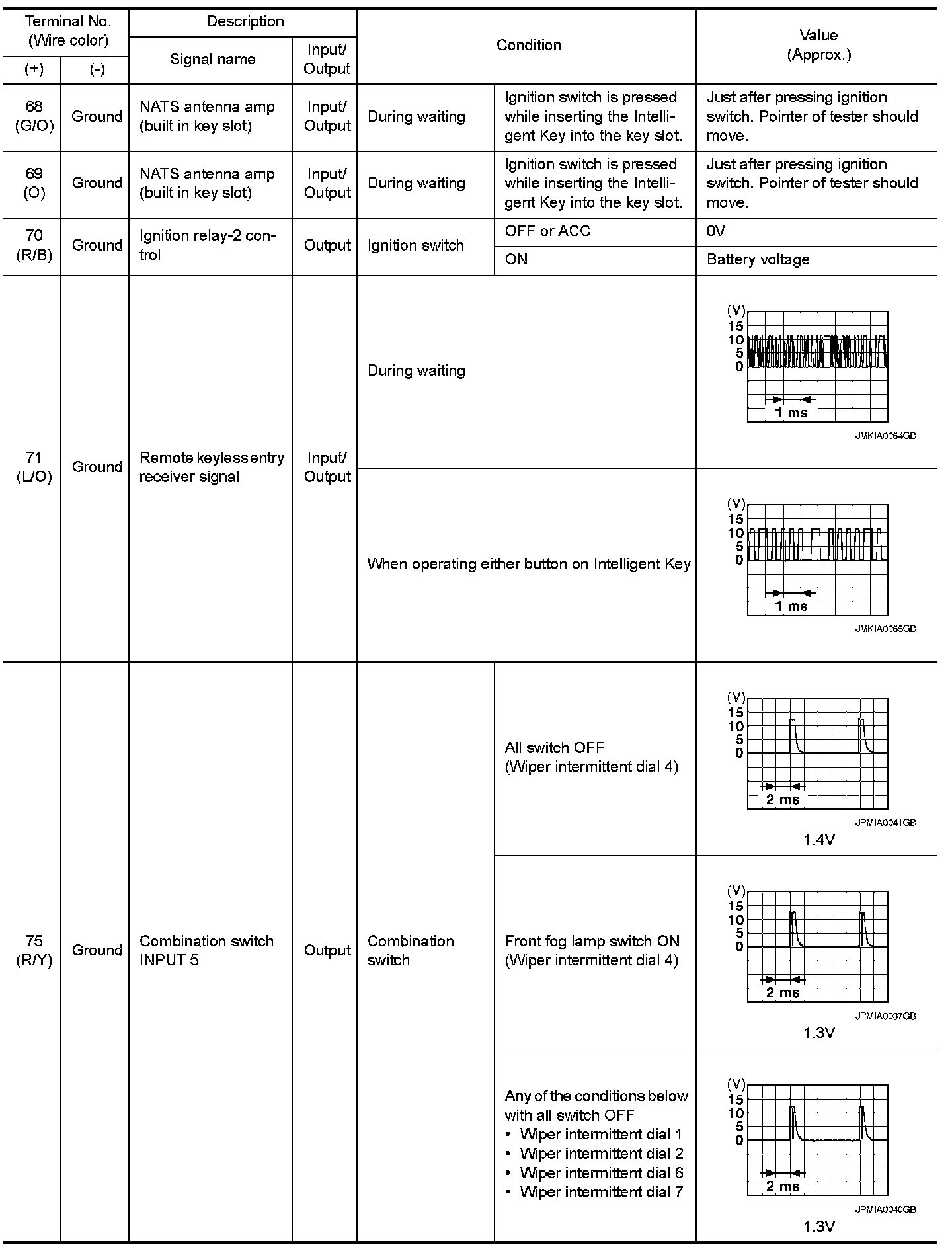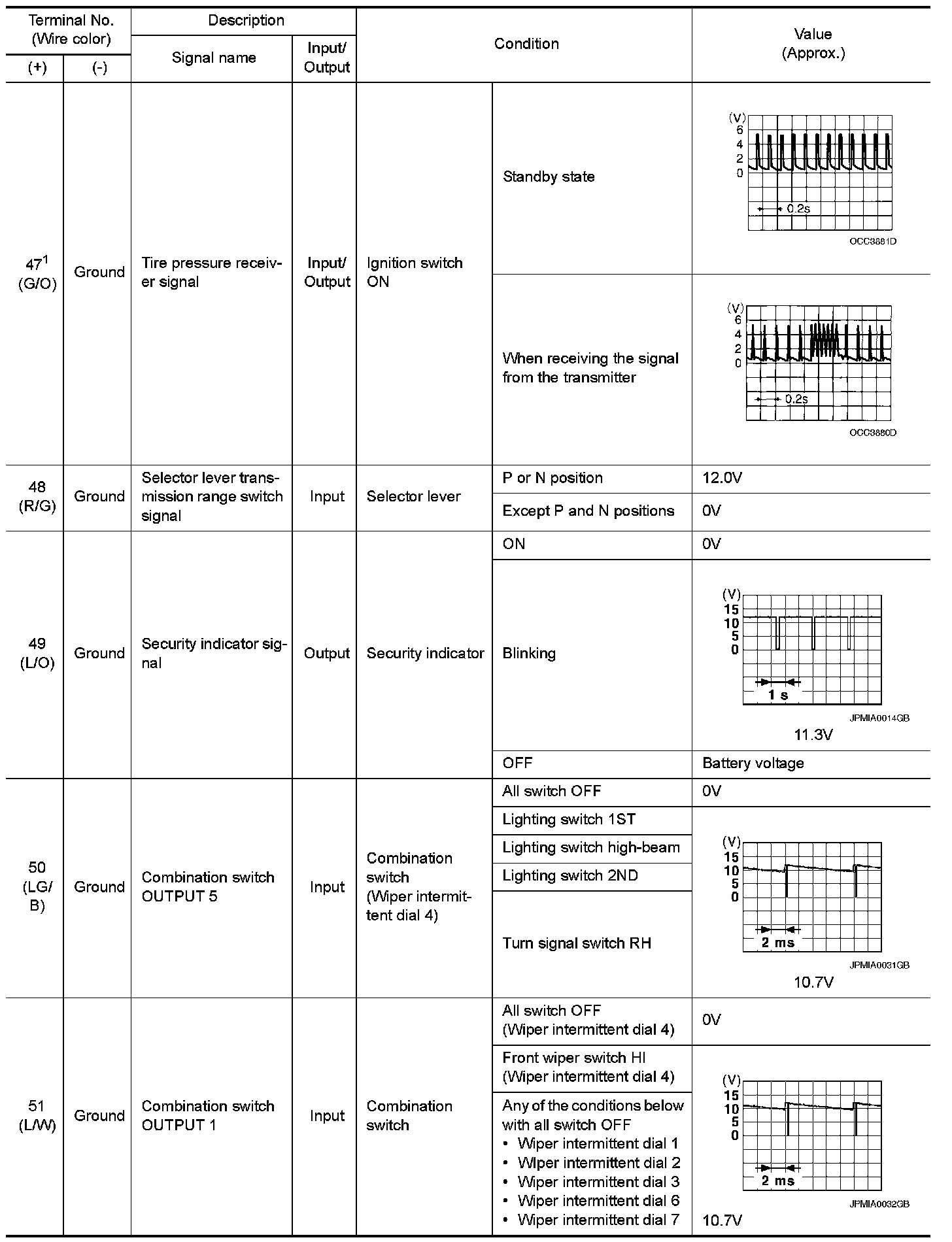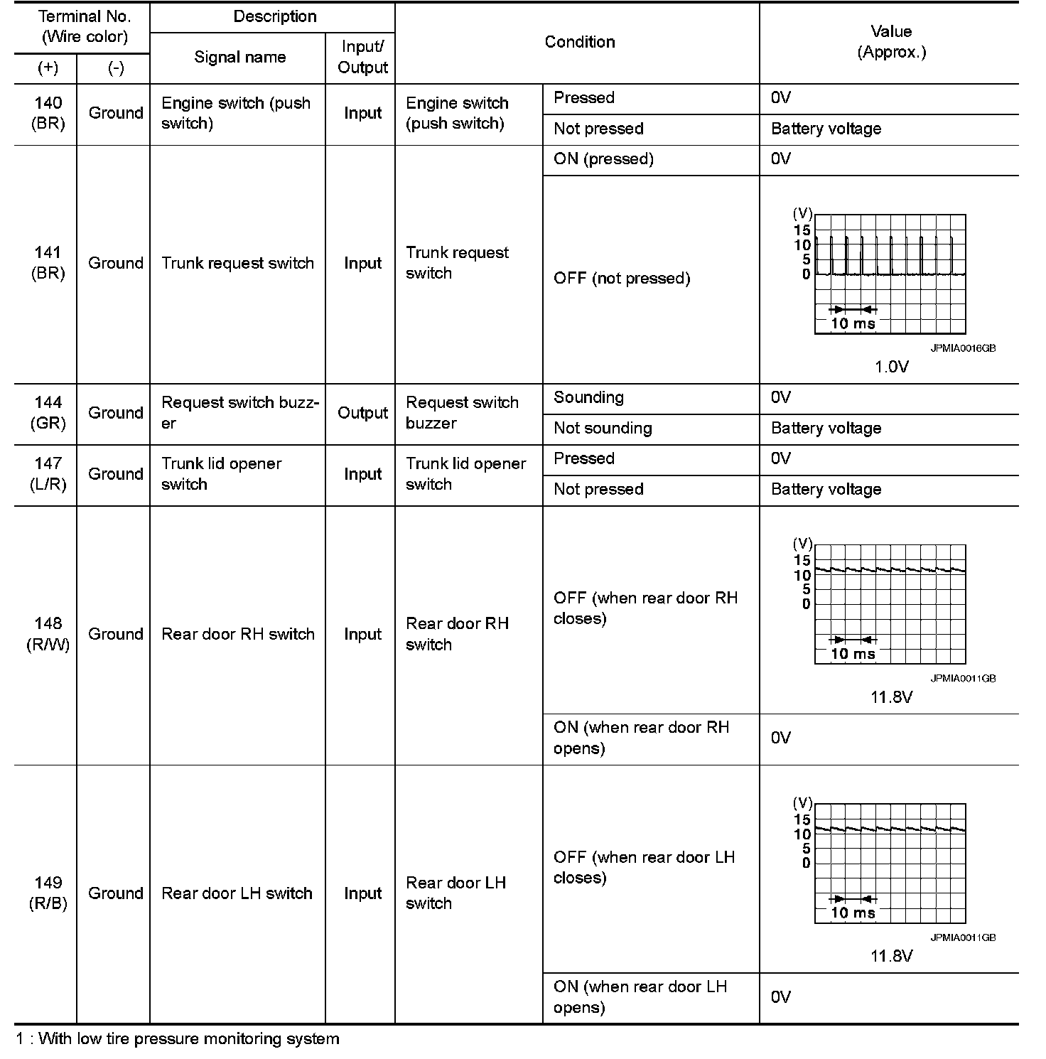 Pinout Values and Diagnostic Parameters