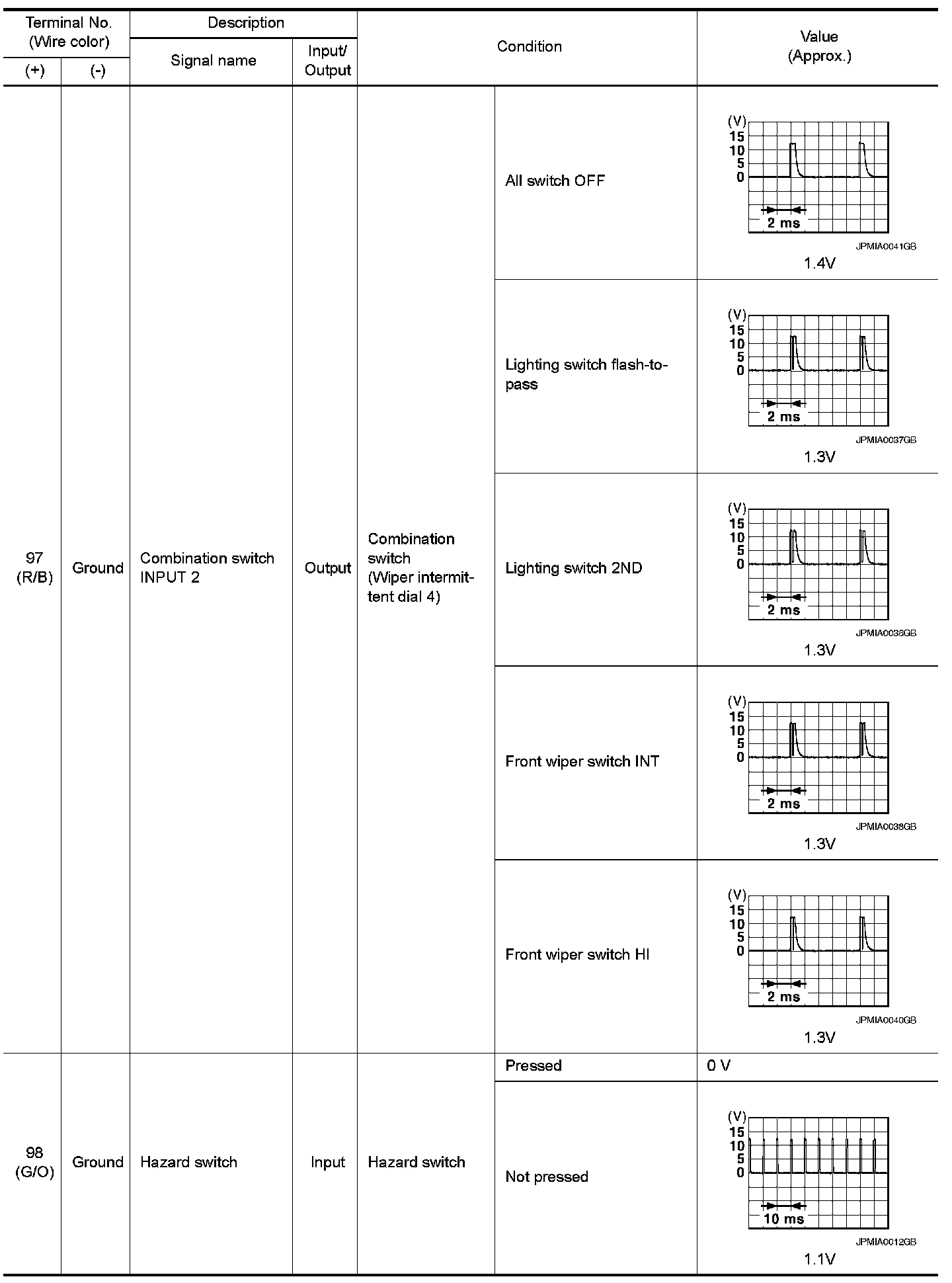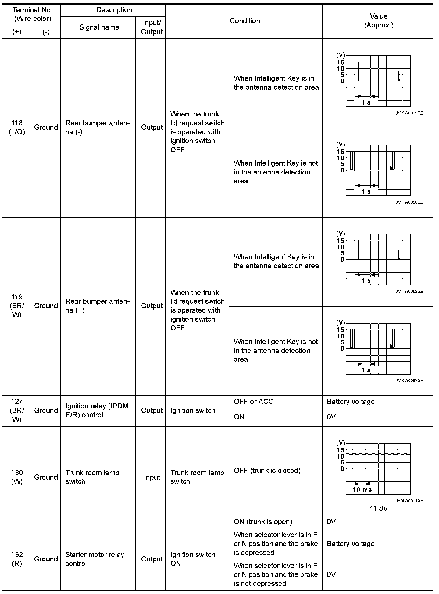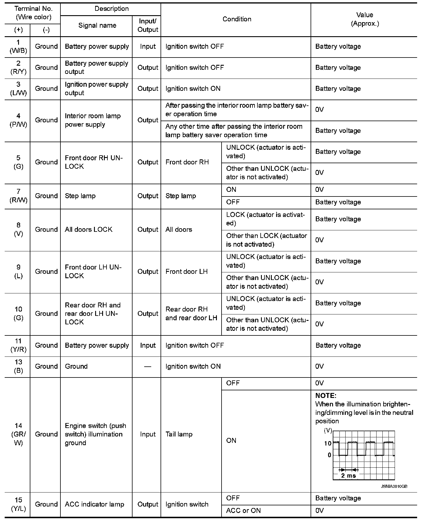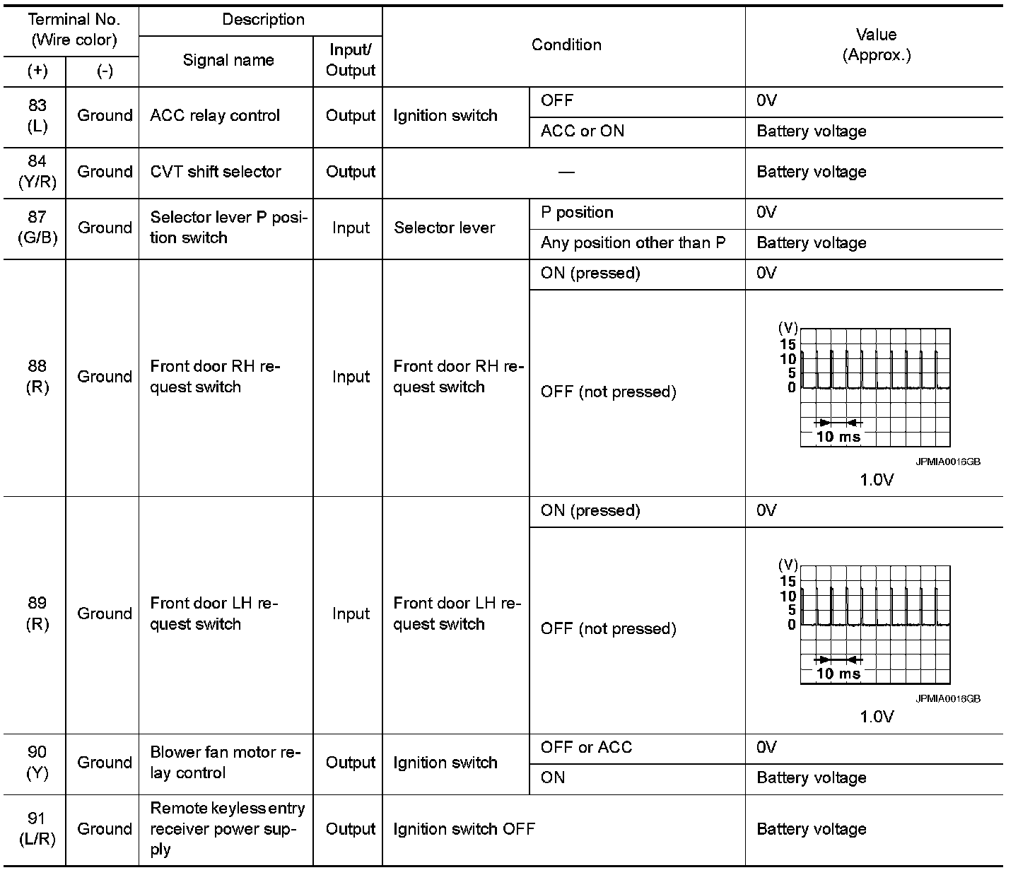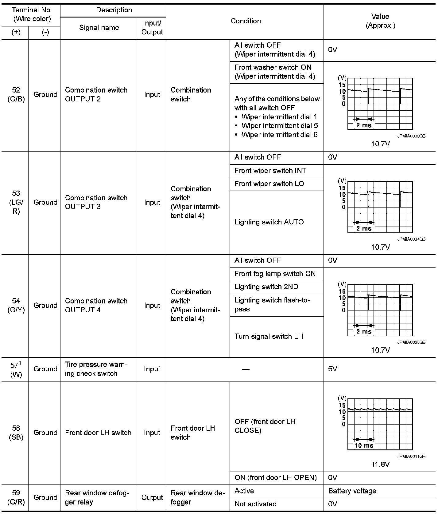 Pinout Values and Diagnostic Parameters